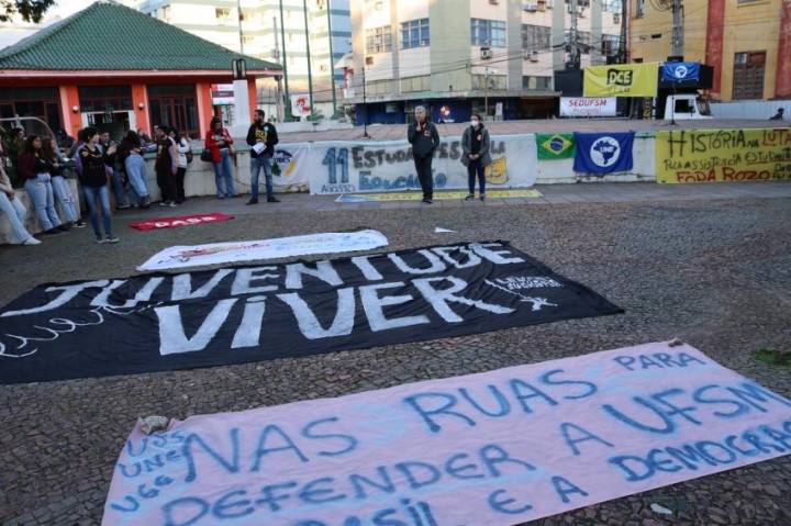 *Diretoria da Sedufsm em ato contra os cortes orçamentários na UFSM