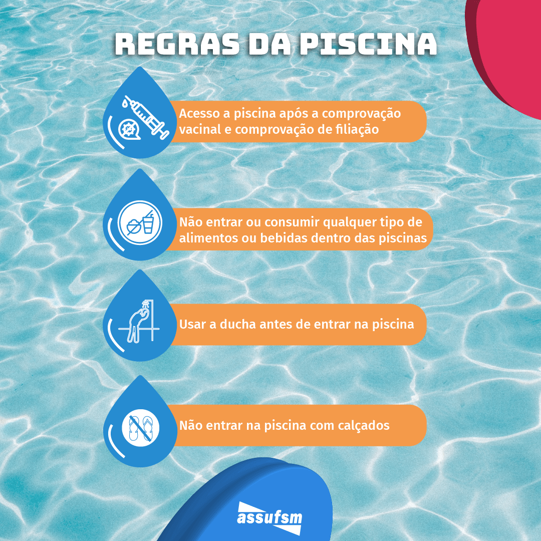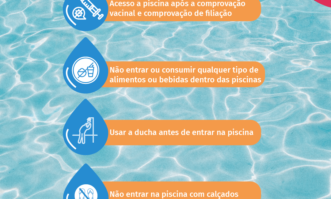 Confira o regulamento de utilização das piscinas na imagem abaixo: