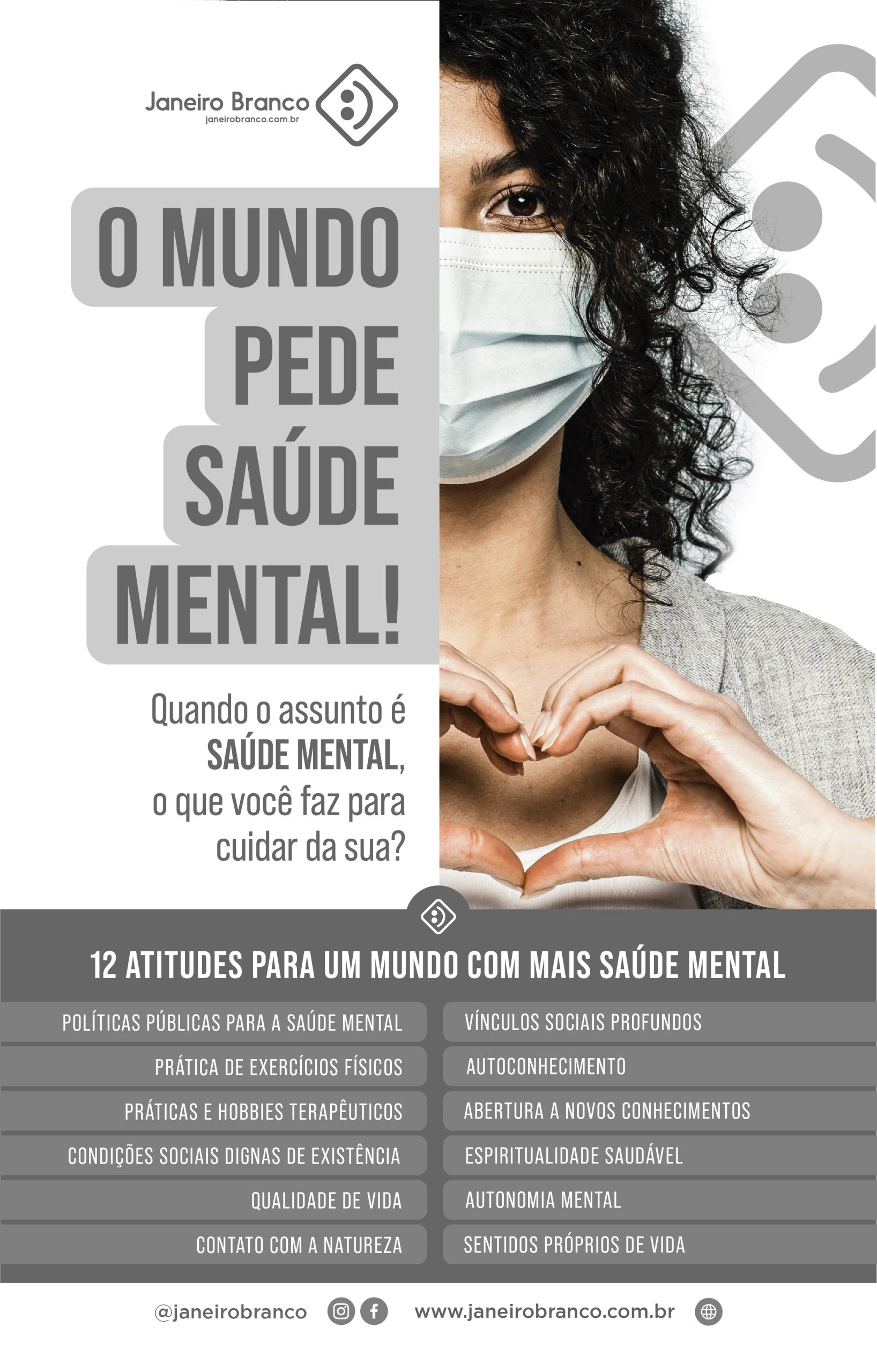 O Janeiro Branco é um movimento social dedicado à construção de uma cultura da Saúde Mental na humanidade. É, também, o nome do Instituto que coordena esse movimento. O seu objetivo é chamar a atenção dos indivíduos, das instituições, das sociedades e das autoridades para as necessidades relacionadas à Saúde Mental dos seres humanos. Uma humanidade mais saudável pressupõe respeito à condição psicológica de todos! Esse trecho foi retirado do site que compõe a campanha do mês de janeiro, em prol da saúde mental e emocional (veja aqui).