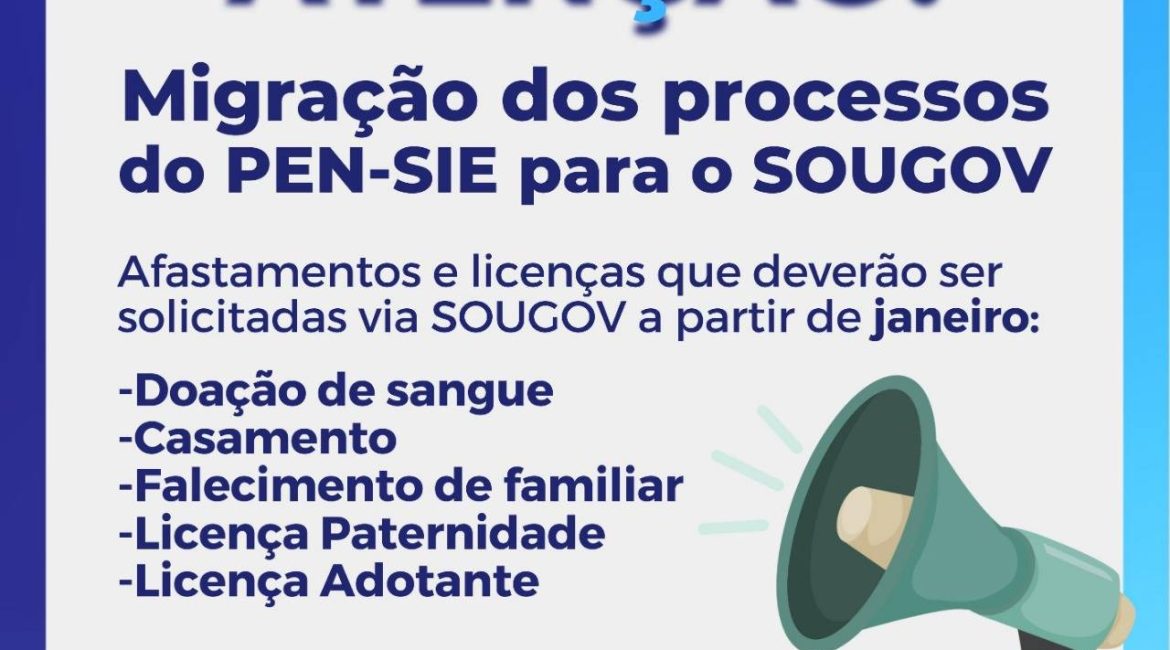 A Pró-Reitoria de Gestão de Pessoas (PROGEP) da Universidade Federal de Santa Maria informa que o portal PEN SIE irá migrar alguns serviços para o portal SOUGOV.