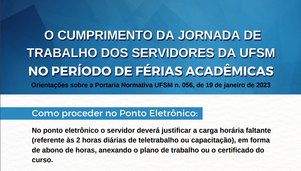 Devido à inúmeras dúvidas de entendimento sobre a Portaria Normatina de número 56, de 19 de janeiro de 2023, a Pró-Reitoria de Gestão de Pessoas da Universidade Federal de Santa Maria (PROGEP/UFSM) realizou um documento de dúvidas frequentes.