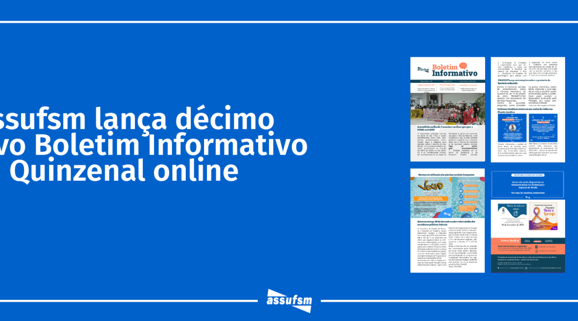 Todas as notícias e informes do Boletim estão completos em nosso site, acesse: ASSUFSM – Associação dos Servidores da Universidade Federal de Santa Maria e fique sempre bem informado(a)!