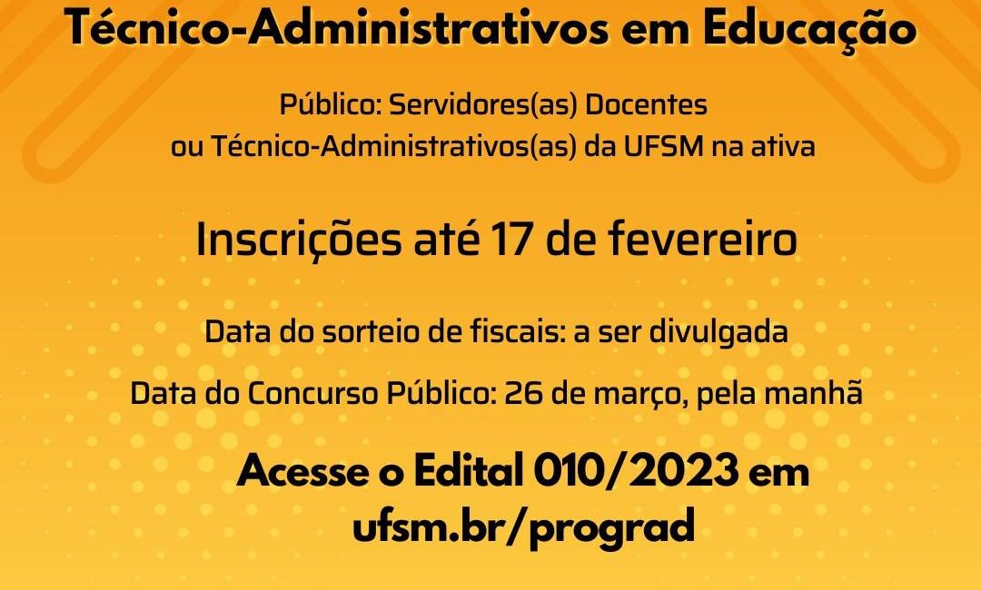 A Pró-Reitoria de Graduação da Universidade Federal de Santa Maria, a PROGRAD/UFSM, abriu edital de seleção para a Comissão Fiscal que irá atuar no Concurso Público de Técnico Administrativos(as) em Educação da UFSM, em 26 de março de 2023.