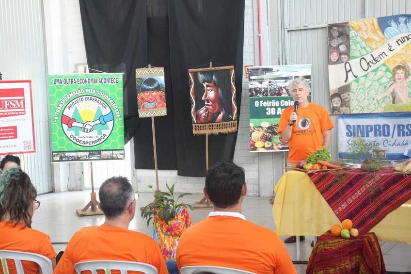 Dentre as representações do movimento sindical que apoiaram a atividade estava a Sedufsm. O presidente da Seção Sindical dos Docentes da UFSM, professor Ascísio Pereira (foto abaixo), usou o microfone para enfatizar que um sindicato de professores(as) universitários(as) tem, sim, um importante papel a contribuir nas lutas de combate à fome e às desigualdades do país. Na visão de Ascísio, com a derrota eleitoral do bolsonarismo, abriu-se a perspectiva de que tenhamos esperança de que o povo volte a ser bem tratado.