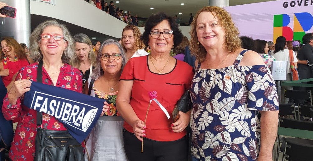 A FASUBRA participou de cerimônia que marca o Dia Internacional de Luta das Mulheres, na quarta-feira (8/3), no Palácio do Planalto. O evento lotou o Salão Nobre com representantes de movimentos sociais, sindicais, das mulheres, diversas ministras, parlamentares e autoridades. Na ocasião o presidente Lula assinou mensagem ao Congresso de ratificação da Convenção 190 da OIT (Organização Internacional do Trabalho) e um pacote com mais de 25 ações que beneficiam as mulheres.