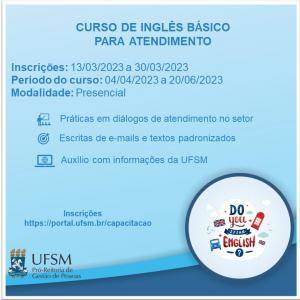A Pró-Reitoria de Gestão de Pessoas (Progep) informa que estão abertas as inscrições para o Curso de Inglês Básico para Atendimento, o qual tem como objetivo disponibilizar, especialmente aos Técnico-Administrativos em Educação da UFSM, aulas de inglês básico voltadas para o atendimento ao público internacional.