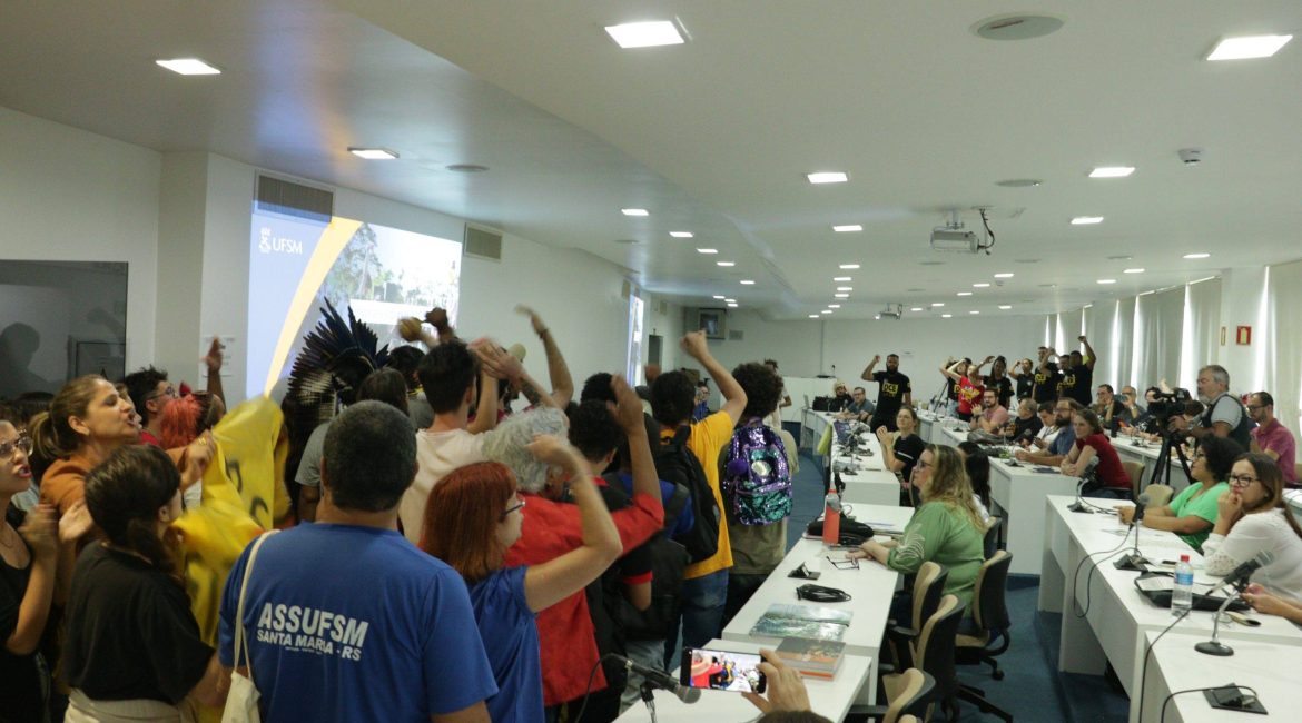 A sessão seguiu com um forte debate, durante toda a manhã dessa quinta e, por fim, a reunião foi suspensa, pelo Reitor Luciano Schuch, sem nova data para acontecer, após nova ocupação dos e das estudantes na Sala dos Conselhos.
