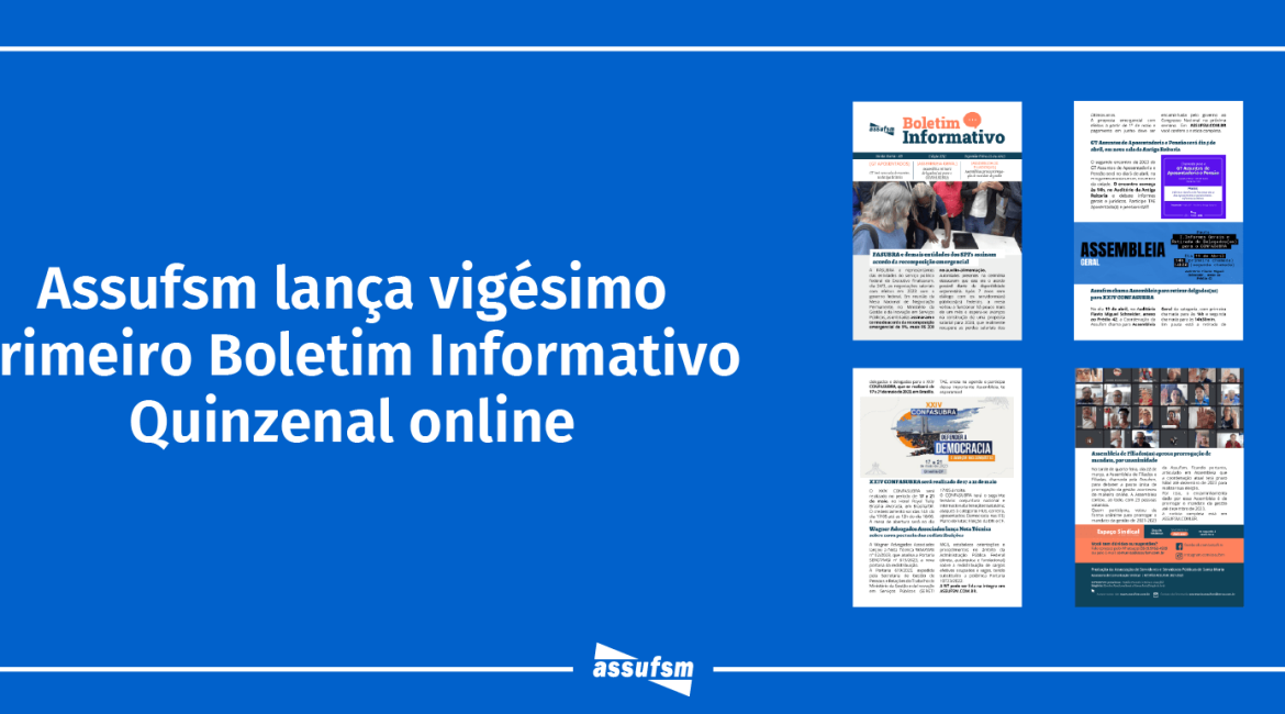 A Coordenação da Assufsm, gestão 2021-2023, em parceria com o Setor de Comunicação do Sindicato, lança hoje a Edição de número 21 do Boletim Informativo Online.