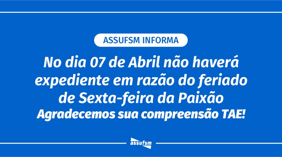 ATENÇÃO TAE: Assufsm não terá expediente no dia 7 de abril devido ao feriado de Sexta-Feira da Paixão