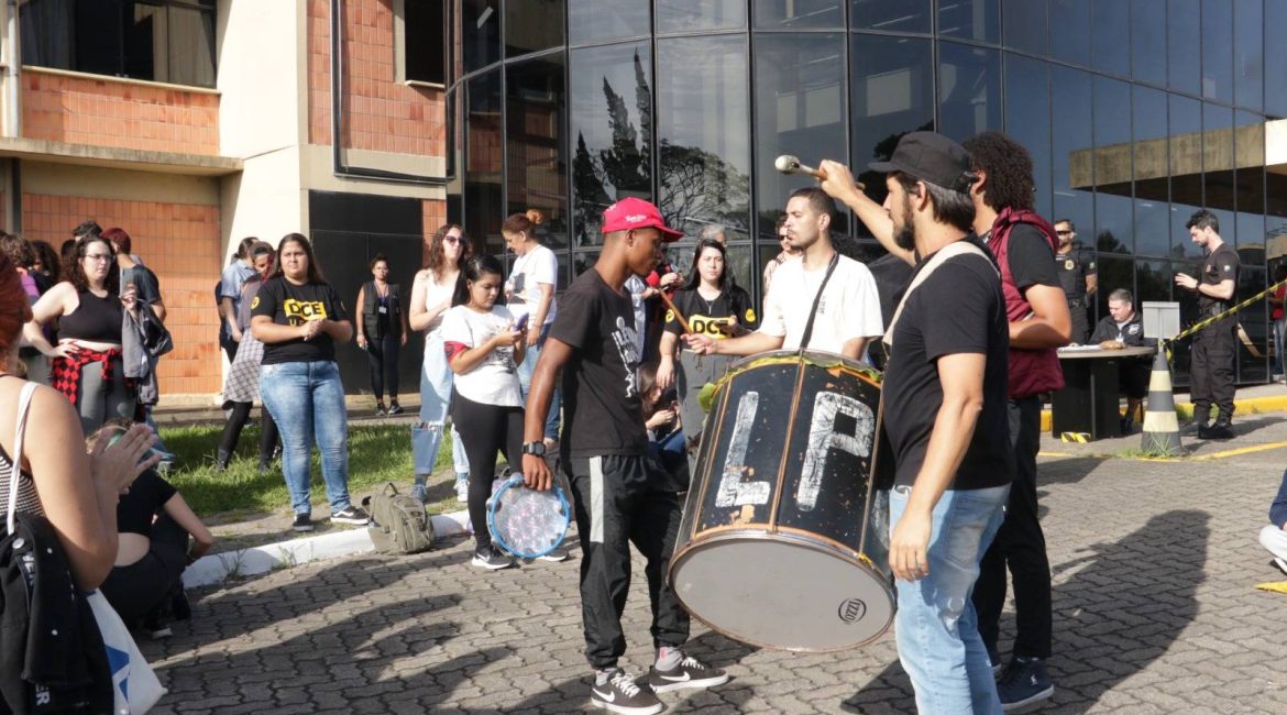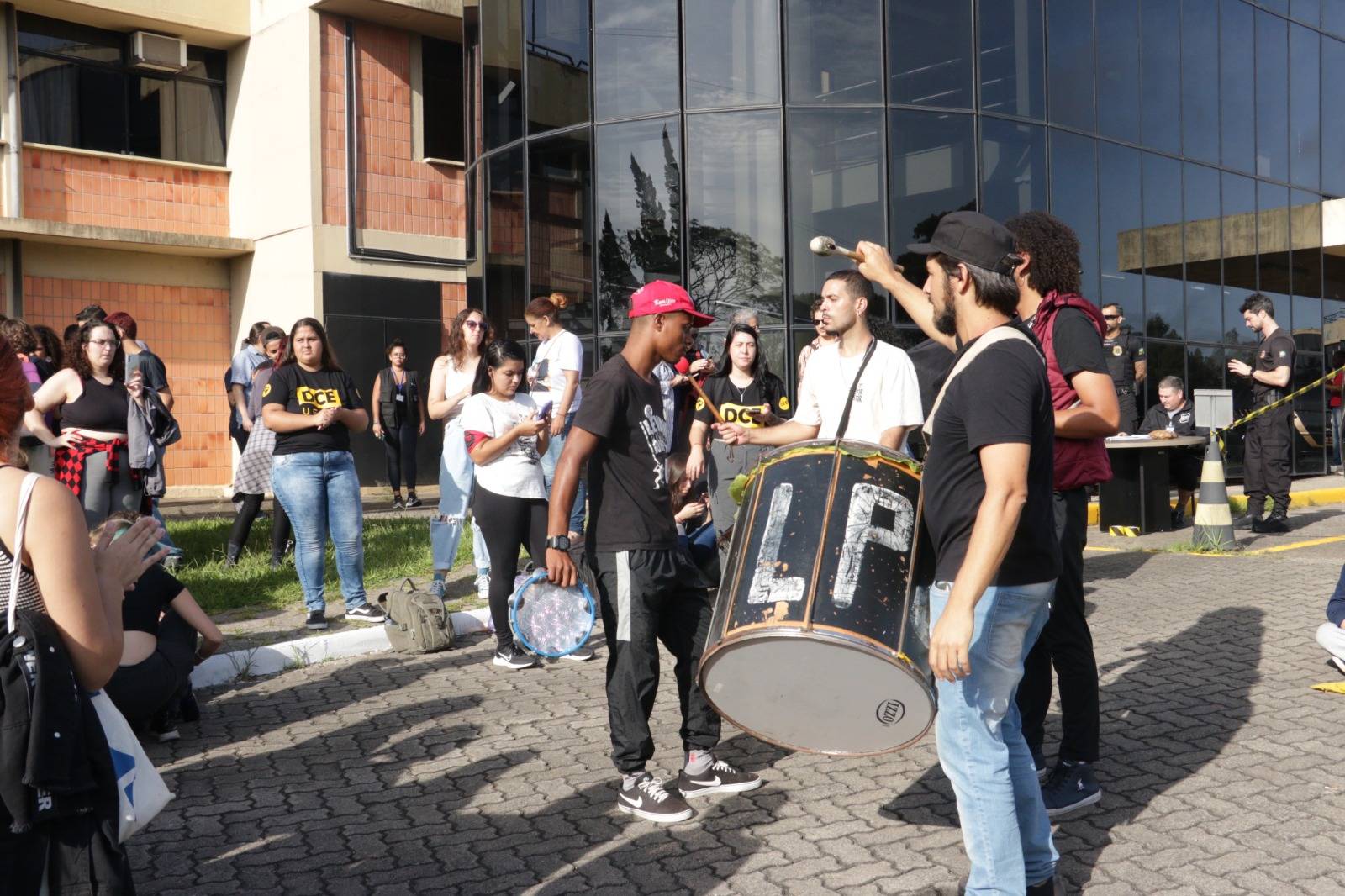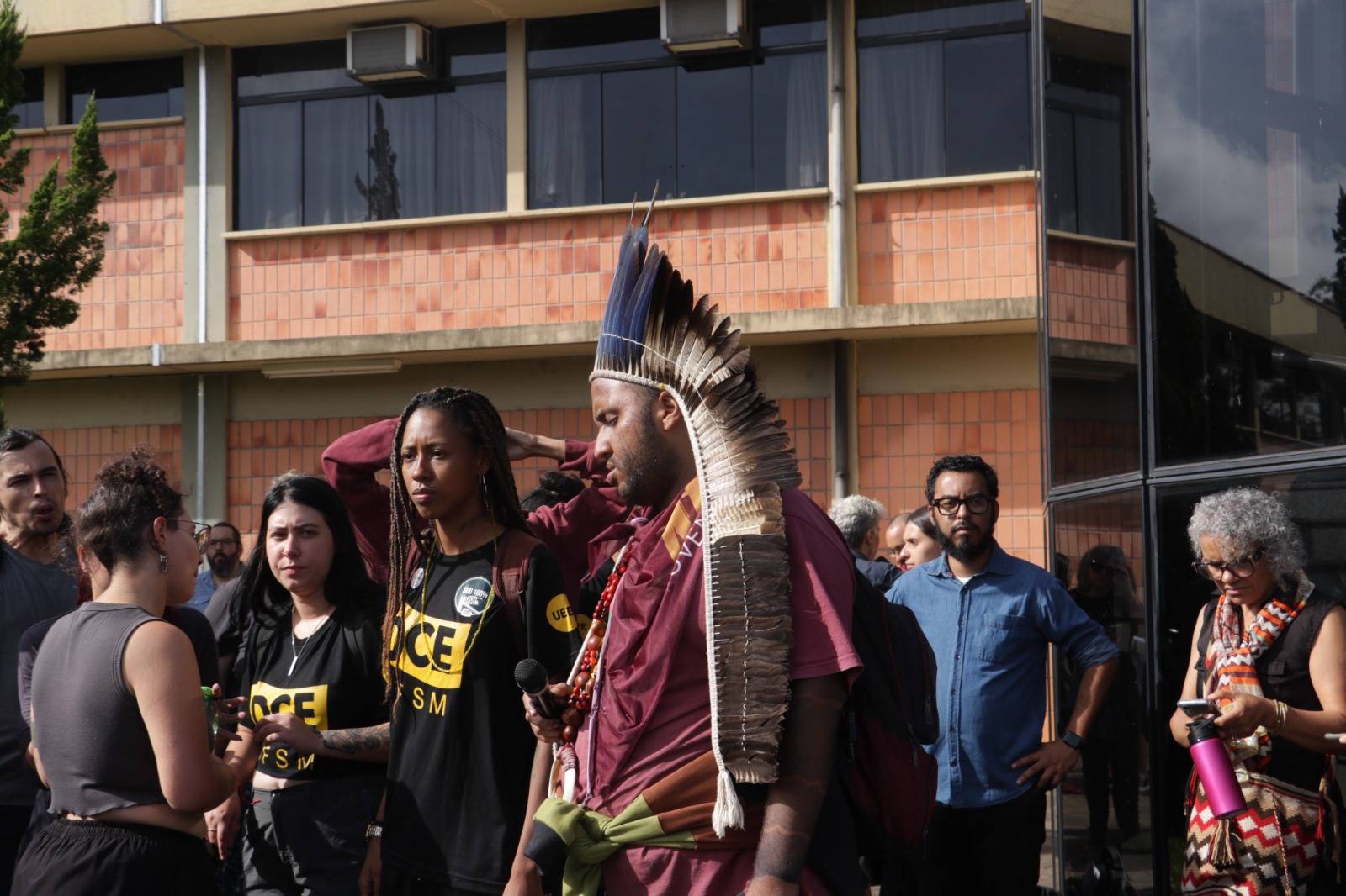 Do lado de fora do prédio do Inpe – onde acontecia a reunião – Polícia Federal e Brigada Militar impediam o acesso de estudantes, servidores e movimentos sociais que entoavam em coro a frase “sem discussão, e covardia, é desse jeito que age a Reitoria”.