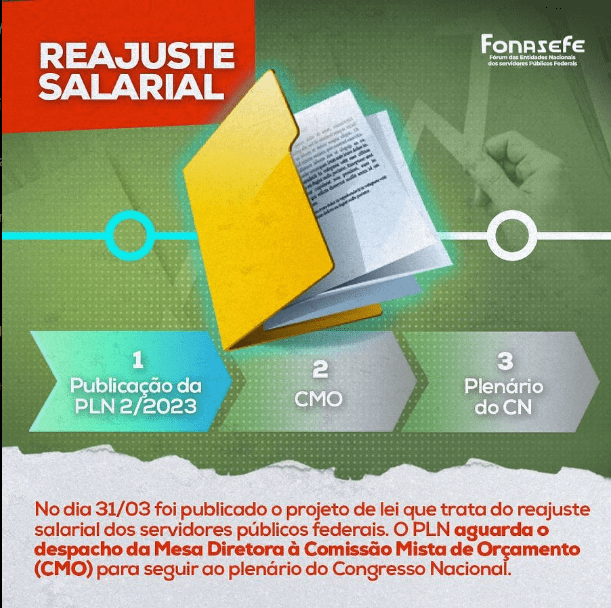 O envio do projeto de lei 2/2023 é necessário para atender às exigências da LOA e autorizar a concessão do aumento. Uma vez publicado, o PL aguarda o despacho da Comissão Mista de Orçamento para seguir ao Plenário do Congresso Nacional para ser votado. Pelo acordo, os servidores receberão 9% de reajuste salarial linear a partir de maio, com pagamento em 1º de junho.