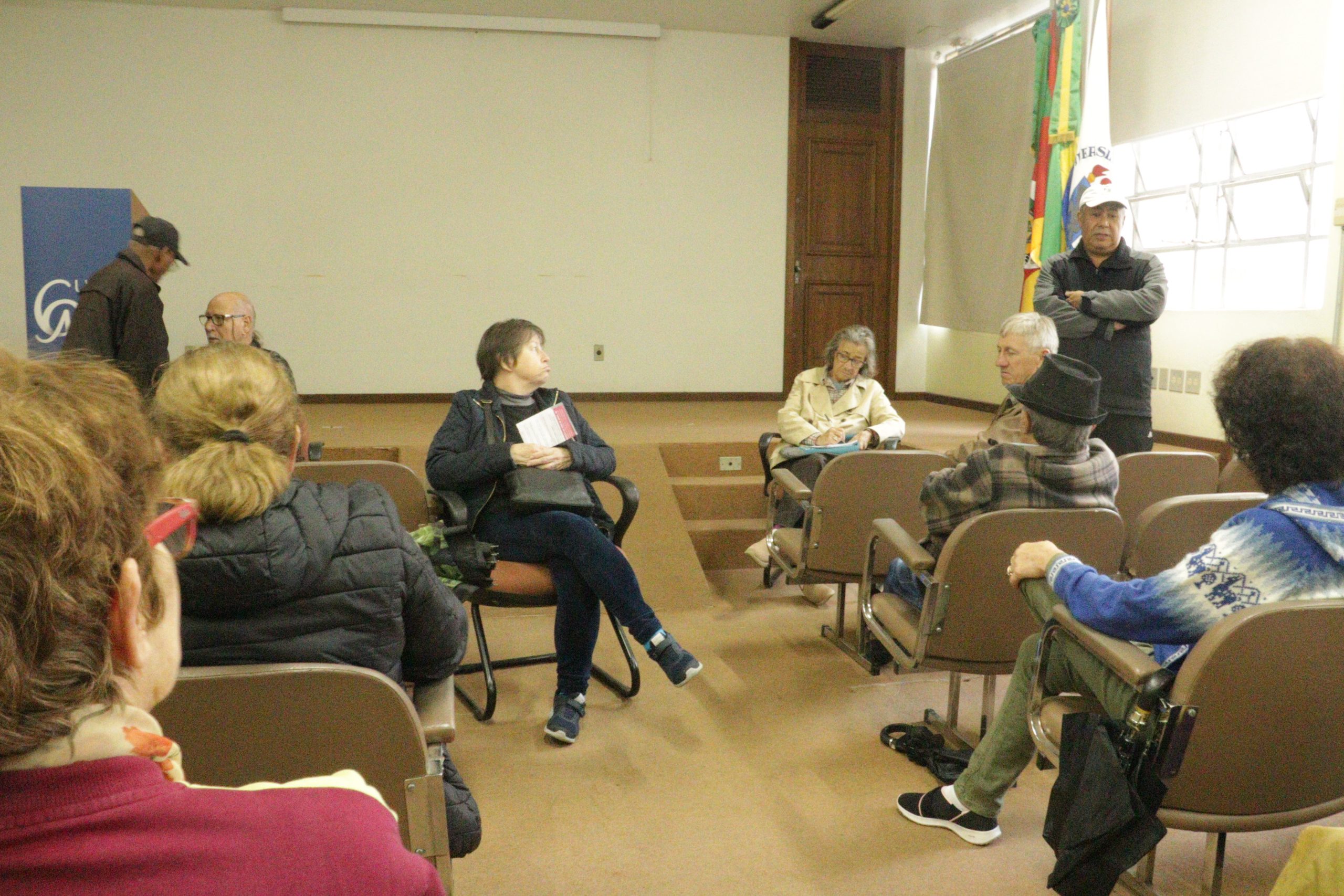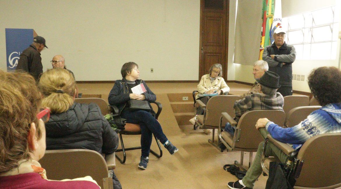 Nem a chuva atrapalhou a reunião do GT Assuntos de Aposentadoria e Pensão da Assufsm, na tarde do dia 3 de maio. Os e as participantes estiveram presentes na Sala 351, Auditório da Antiga Reitoria, no centro de Santa Maria, debatendo sobre assuntos de interesse da categoria de aposentados(as) e pensionistas.