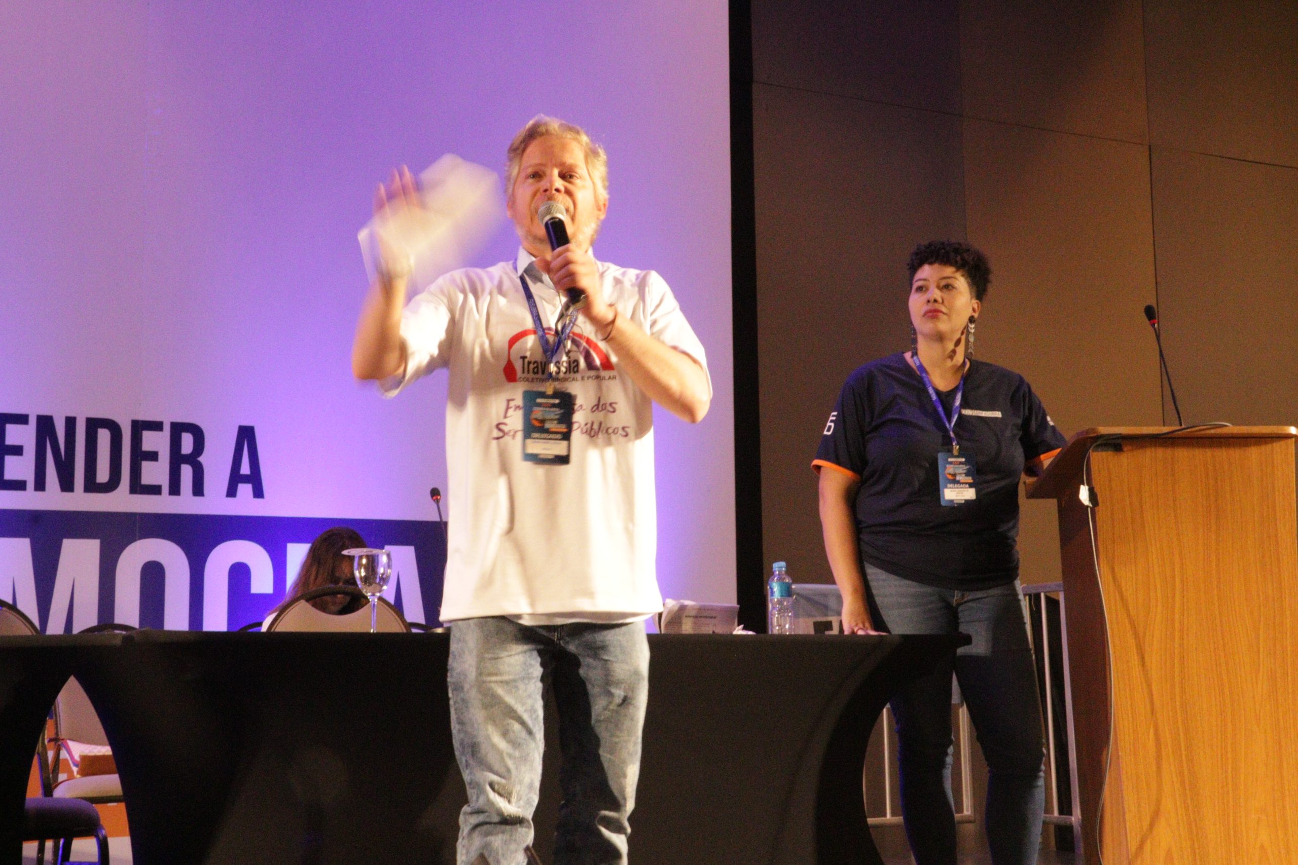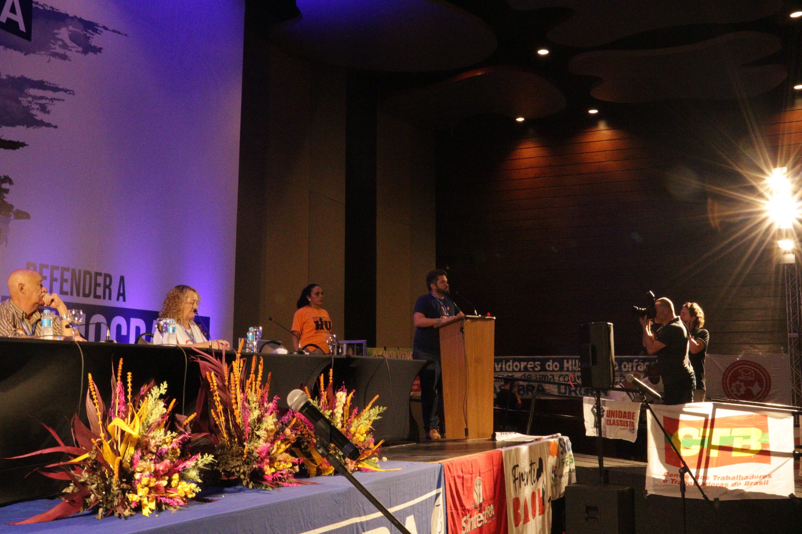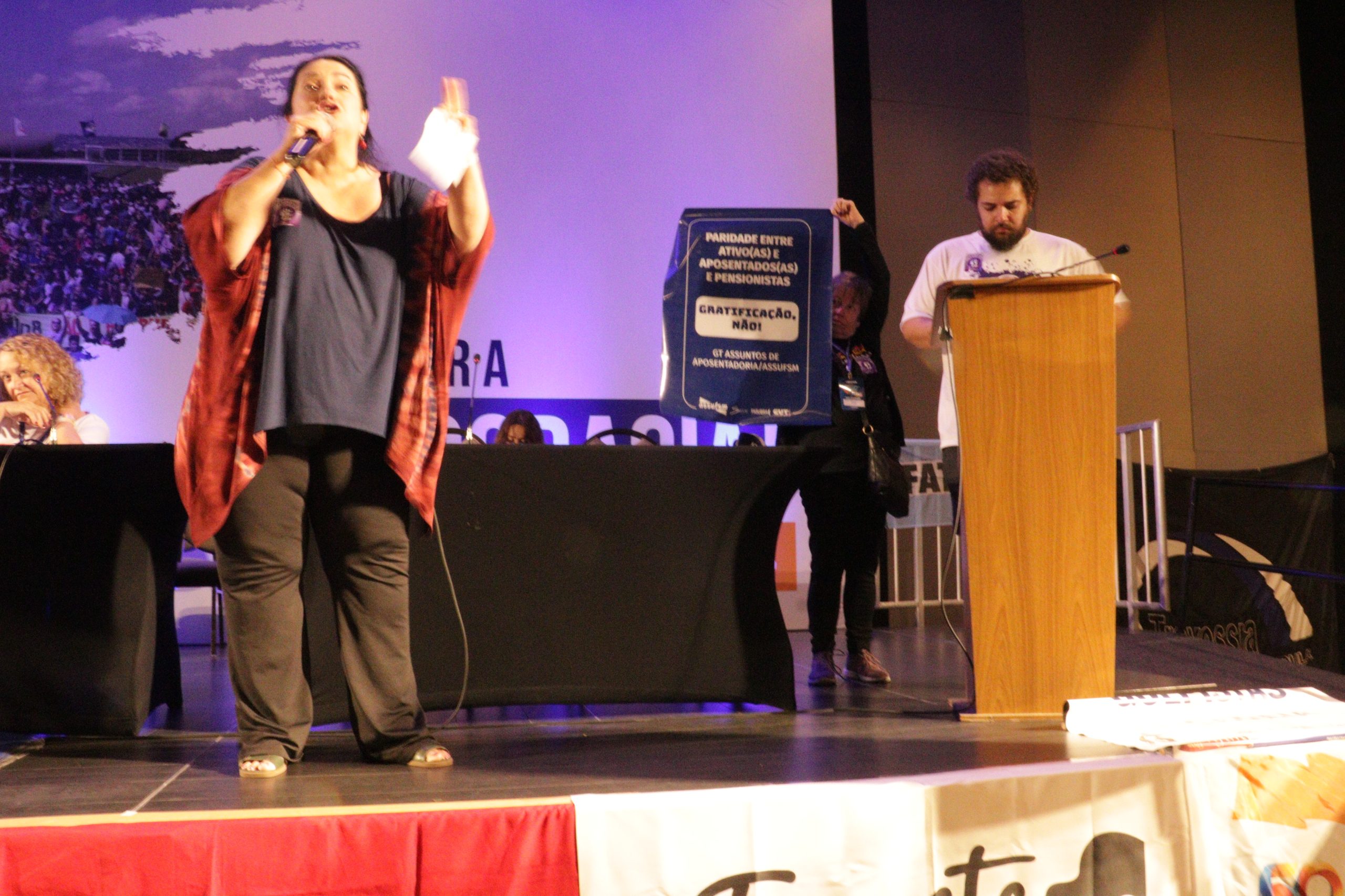 A mesa contou com debatedores(as) delegados(as) que puderam falar a cerca de uma conjuntura dentro das Universidades Federais e suas realidades dentro dos seus locais de trabalho. Além disso, reforçam a luta dentro do serviço público. A fala sobre perdas políticas também esteve presente.