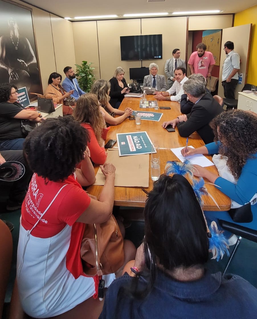 Coordenadoras e Coordenadores da FASUBRA e representantes do FONASEFE participaram de reunião na terça-feira (23/5) com a bancada do PSOL. Na pauta estava a articulação da luta contra o arcabouço fiscal dentro e fora do Congresso Nacional.