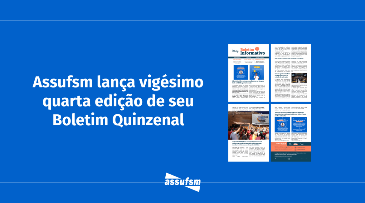 Vigésima quarta edição do Boletim Informativo Quinzenal da Assufsm traz notícias sobre o XXIV CONFASUBRA, o retorno dos atendimentos jurídicos ao Campus Sede, a aprovação do texto-base do arcabouço fiscal e muito mais