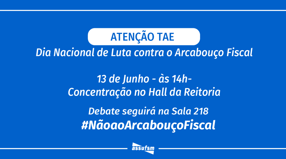 Conforme deliberado em Assembleia Extraordinária, no dia 7 de junho, a Assufsm realizará o Dia Nacional de Luta contra o Arcabouço Fiscal, na Universidade Federal de Santa Maria. Um debate foi chamado para a ação contra o marco fiscal.