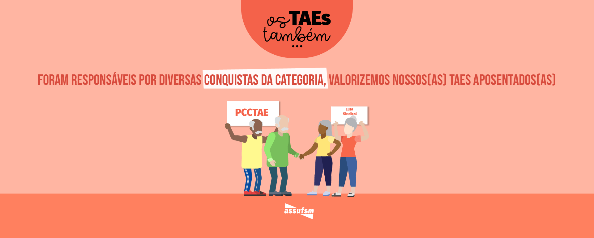 A Assufsm lança a Campanha nesse mês de valorização da pessoa idosa (dia 15 de junho – Dia Mundial da Conscientização da Violência contra a Pessoa Idosa e dia 17 de junho – Dia do Funcionário e Funcionária Pública Aposentada), como forma de homenagear a todos e todas TAEs aposentadas que contribuíram e contribuem para o crescimento do Sindicato, dia após dia, estando presentes em Grupos de Trabalho, Assembleias, Plenárias, mobilizações unificadas, Sede Campestre da Assufsm e demais organizações sindicais.