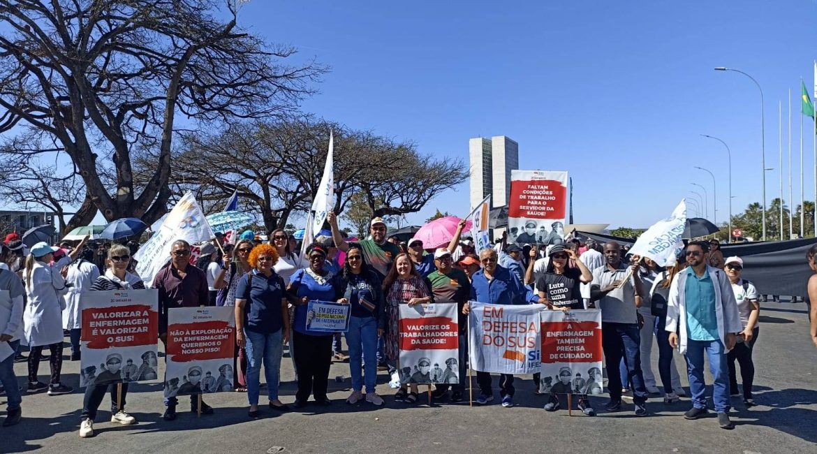 Assim, a FASUBRA manifesta apoio a todas as manifestações organizadas pelas trabalhadoras e trabalhadores da enfermagem que ocorrem hoje em Brasília e em várias cidades do Brasil em defesa do pagamento do piso da enfermagem.