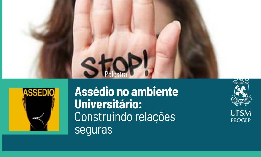 A Universidade Federal de Santa Maria (UFSM), por meio da Pró-Reitoria de Gestão de Pessoas (PROGEP), informa que estão abertas as inscrições para a palestra assédio no ambiente universitário: Construindo relações seguras, o qual tem como objetivo aprimorar o conhecimento dos servidores da UFSM, sobre o combate ao assédio moral e sexual, indicar os canais de auxílio e os serviços de apoio disponíveis dentro da Universidade ou fora dela, bem como sensibilizar o conjunto da comunidade universitária para a promoção de um ambiente seguro nas relações de trabalho e acadêmica.