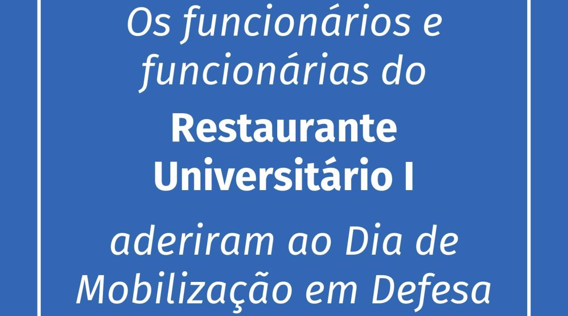 Os e as TAEs dos Restaurantes Universitários I e II da UFSM também irão aderir a paralisação, por tanto, é importante que você fique atento e atenta às informações para às distribuições dos Kits de refeições, que serão comunicados oficialmente nas redes sociais dos RU.