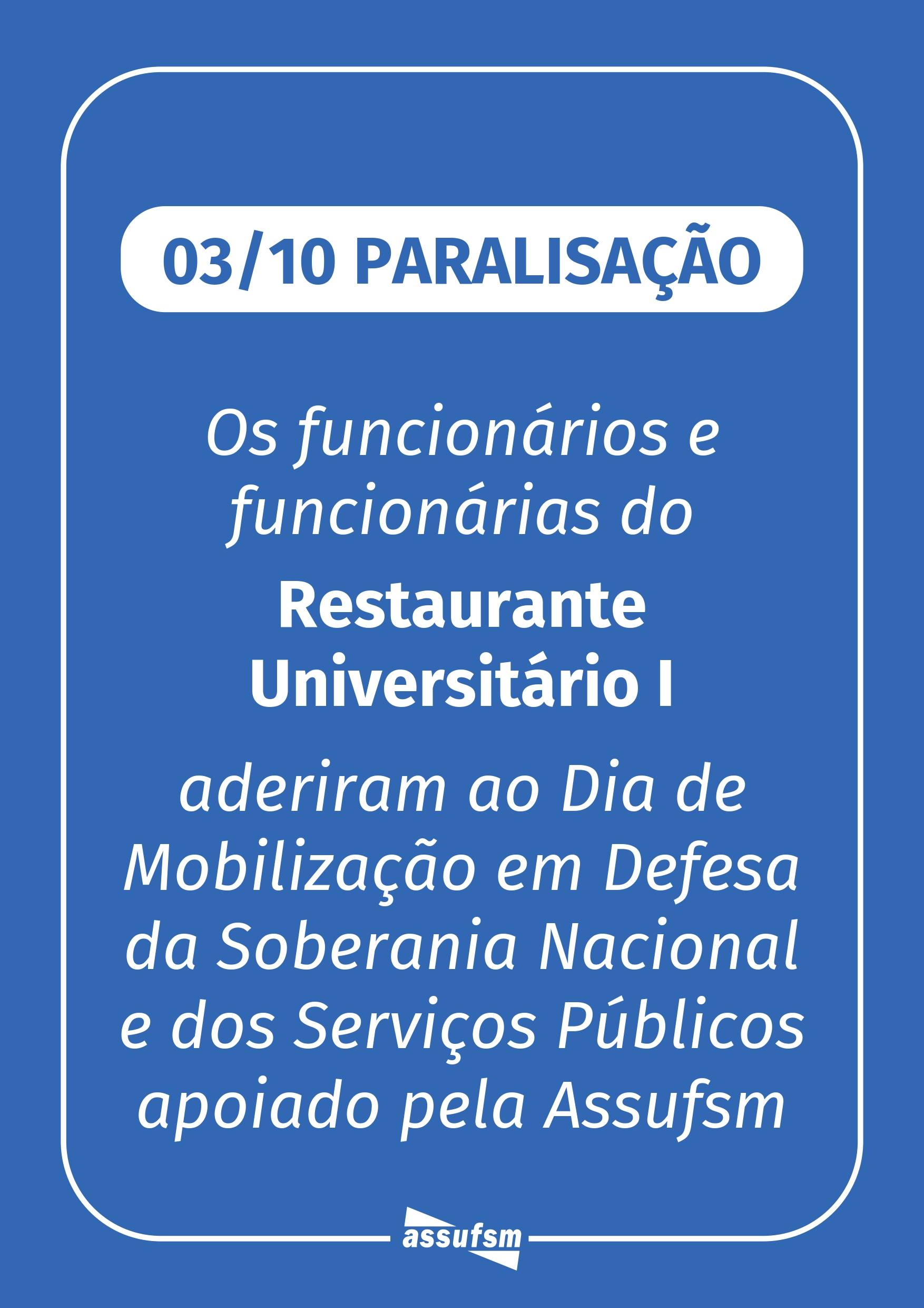 Assufsm informa: Restaurantes Universitários da UFSM irão aderir às paralisações do dia 3 de outubro