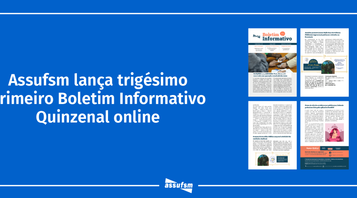 A Coordenação da Assufsm, gestão 2021-2023, em parceria com o Setor de Comunicação do Sindicato, lança hoje a Edição de número 31 do Boletim Informativo Online.