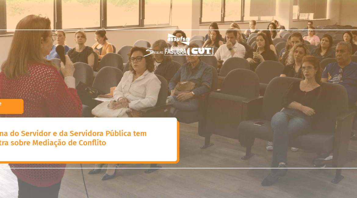 A Pró-Reitoria de Gestão de Pessoas da Universidade Federal de Santa Maria (PROGEP-UFSM) organizou, desde o dia 19 de outubro, a Semana do Dia do e da Servidora Pública para homenagear o funcionalismo público que trabalha na UFSM. Dentre os dias de atividade, as entidades representativas da Universidade pautaram o tema da palestra pertinente para a categoria na manhã do dia 30 de outubro.