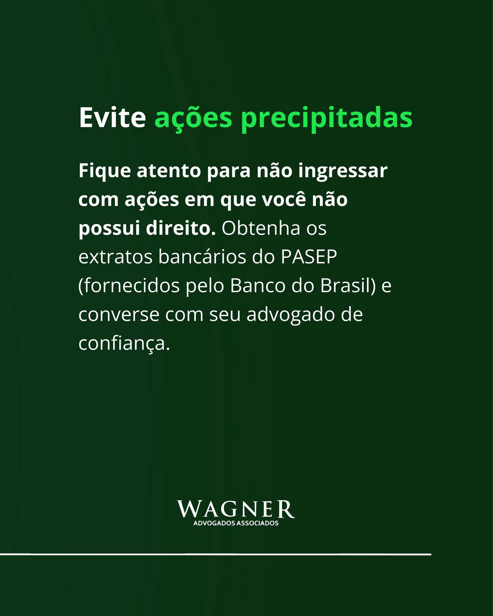 Portanto, fique atento para não ingressar com ações em que você não possui direito. Obtenha os extratos bancários do PASEP (fornecidos pelo Banco do Brasil) e converse com seu advogado de confiança.
