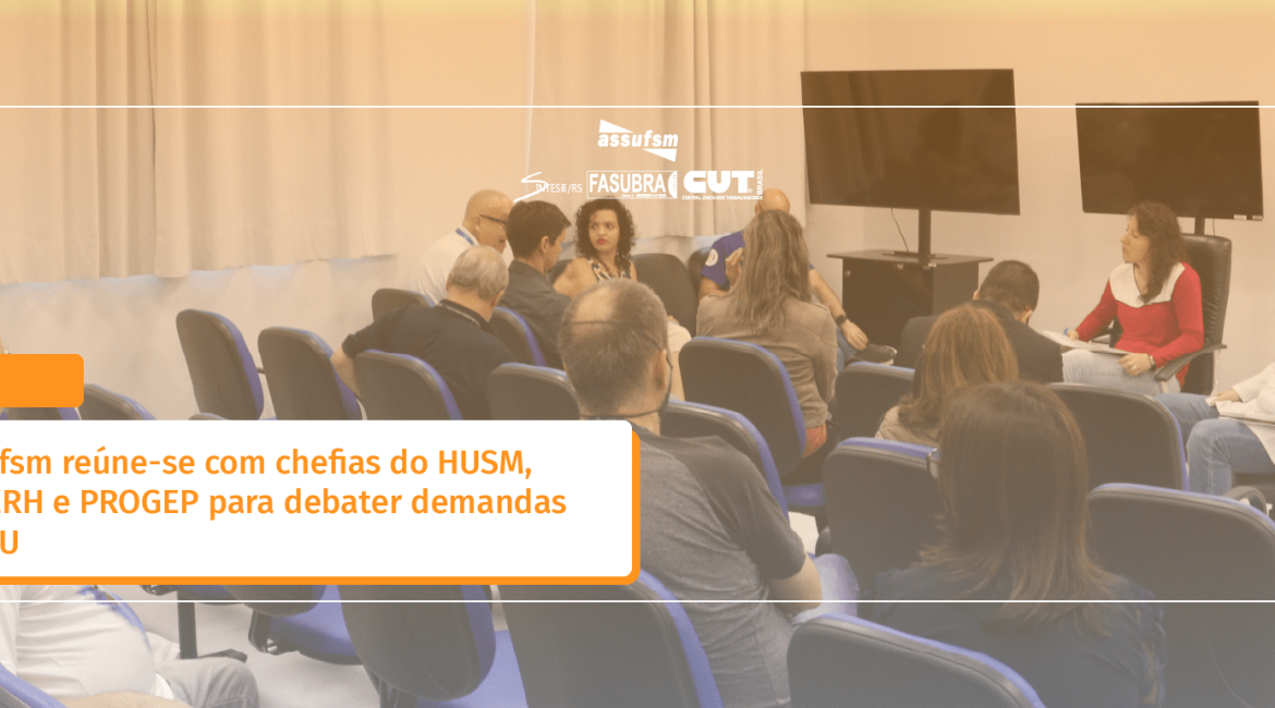 Na manha de quinta-feira (23), a Assufsm se reuniu com as chefias da EBSERH, HUSM e PROGEP para debater sobre as demandas passadas ao sindicato por servidores e servidoras RJUs, em atividade de paralisação, no dia 8 de novembro. Dentre elas: