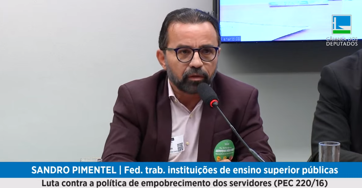 São muitas as lutas em defesa dos serviços e servidores públicos. Uma dessas lutas é contra a desvalorização das carreiras públicas e o empobrecimento dos servidores. E este foi o tema da audiência pública que ocorreu nesta quinta-feira, 7 de dezembro, na Comissão de Administração e Serviço Público da Câmara dos Deputados Federais, através do requerimento nº 73, de 2023, das deputadas Fernanda Melchionna e Sâmia Bomfim. O foco da audiência foi o PEC 220, que trata do reajuste salarial, propondo que ele não seja inferior à variação inflacionária. O evento contou com a participação de Sandro de Oliveira Pimentel, Coordenador de Educação da FASUBRA Sindical, que fez uma exposição sobre o tema, apresentando dados e estatísticas preocupantes. Em sua fala, Sandro cobrou mais atenção aos servidores públicos por parte do governo, nas chamadas Mesas de Negociação Permanente, Centrais, Específicas, que tratam de pautas sobre carreira e recomposição salarial. Afinal, “chega de mesa de enrolação”.