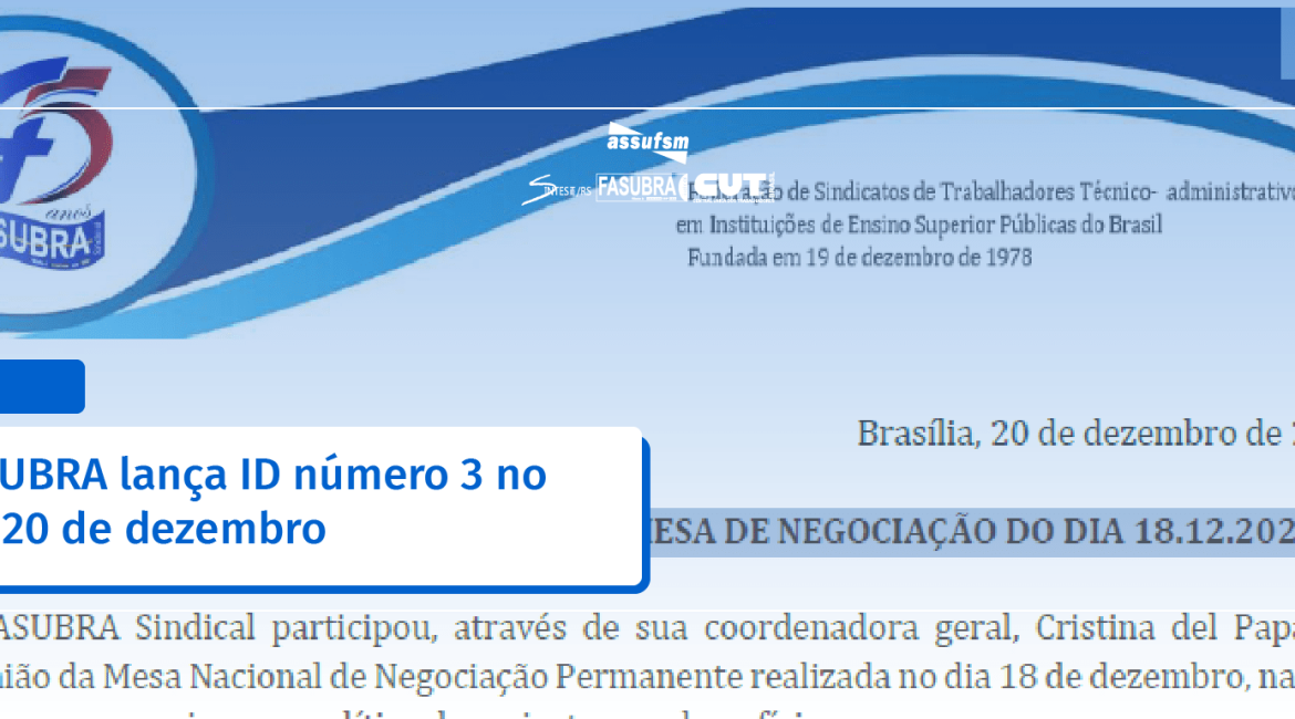 FASUBRA lança ID número 3 no dia 20 de dezembro