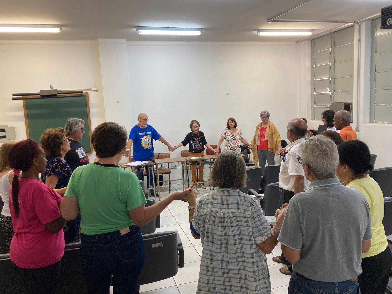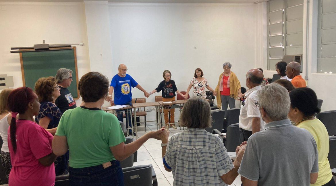 As coordenadoras de Assuntos de Aposentadoria e Pensão da Assufsm Maria Lenir Rodrigues e Eva Machado de Lima deram boas vindas a todos e todas e desejaram, de antemão, boas festas de final de ano. A reunião iniciou com o tradicional momento de oração e agradecimento.
