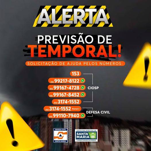Os estragos causados pelo temporal ainda estão sendo contabilizados e as equipes seguem de prontidão para atender possíveis ocorrências. Se precisar de ajuda, entre em contato por meio dos números: