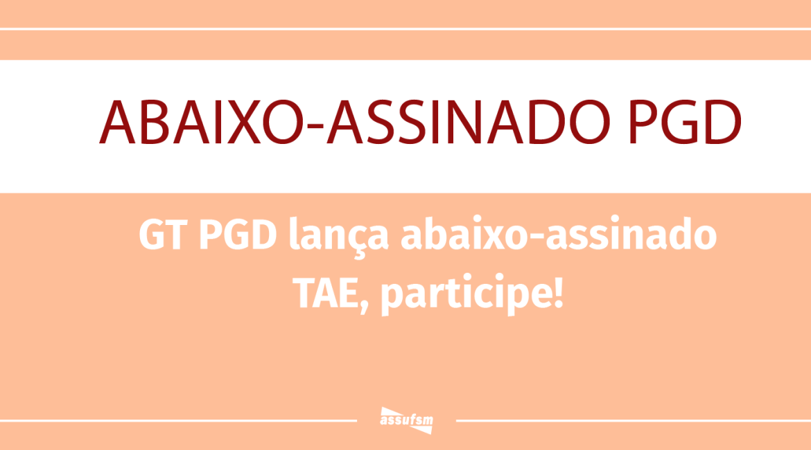 O GT PGD está se preparando para visitar os setores da Universidade com o abaixo-assinado que solicita alterações na Minuta do Programa de Gestão e Desempenho (PGD) da UFSM que será submetida ao Conselho Universitário (CONSU). As visitas também estão sendo programadas para acontecer nos demais campi da Universidade – Frederico Westphalen, Palmeira das Missões e Cachoeira do Sul. Além disso, o abaixo-assinado também poderá ser assinado virtualmente, via formulário. Acesse o formulário aqui. No abaixo-assinado, pedem-se as seguintes alterações na Minuta do PGD: