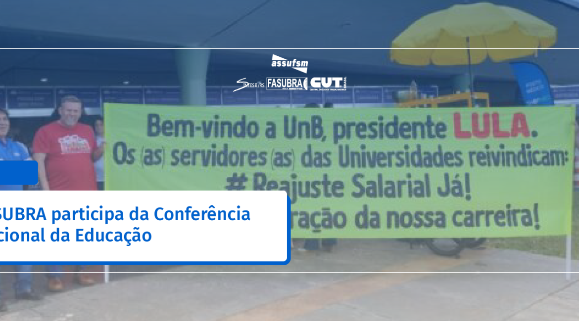 A Coordenadora de Administração e Finanças da FASUBRA, Márcia Abreu da Silva também participou da CONAE como convidada. Outros(as) coordenadores(as) da FASUBRA também atuaram no apoio logístico do evento, tais como, João Daniel de Moura (Coordenação de Estaduais e Municipais), José Almiram Rodrigues (Direção Nacional), Abadia Vieira Calacia (Direção Nacional), Helena Nara Coelho de Souza (Direção Nacional), Luiz Fernando Santos Bandeira (Direção Nacional) e Luar Santana de Paula (Coordenação LGBTQIA+).