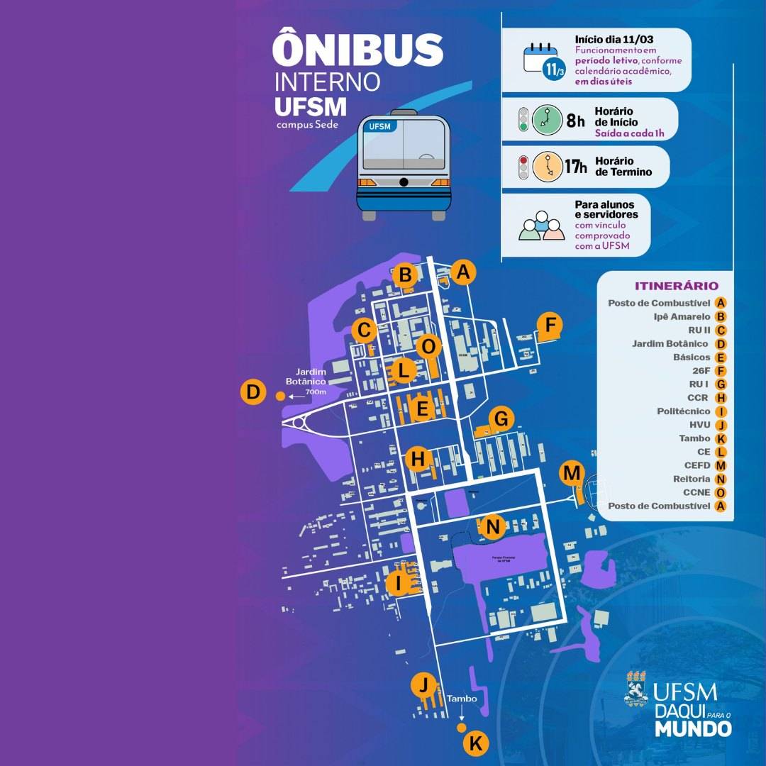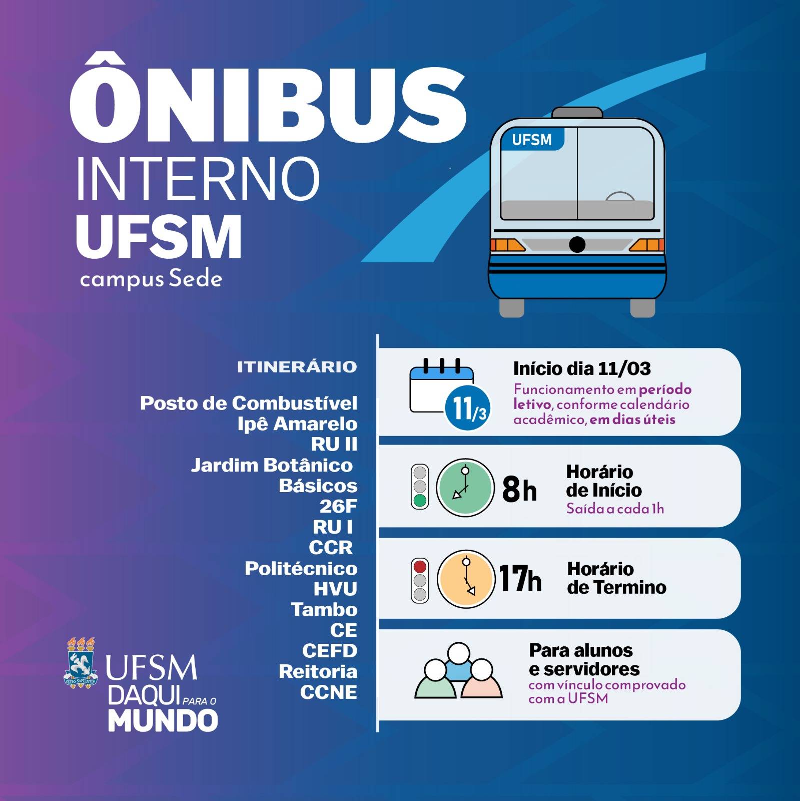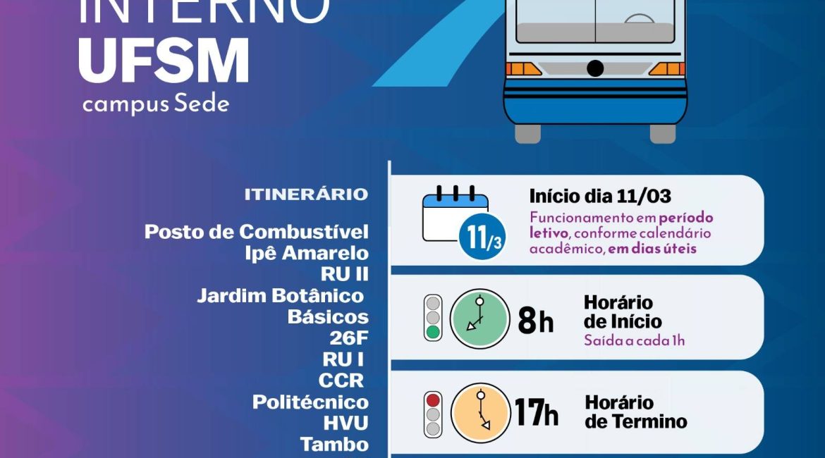 O início do primeiro semestre letivo de 2024 marcará a volta do ônibus interno no Campus Sede da UFSM. O serviço estava suspenso desde o início de 2020, devido a cortes orçamentários. A retomada das atividades acompanha o calendário acadêmico, pelo qual o semestre letivo será de 11 de março a 16 de julho.