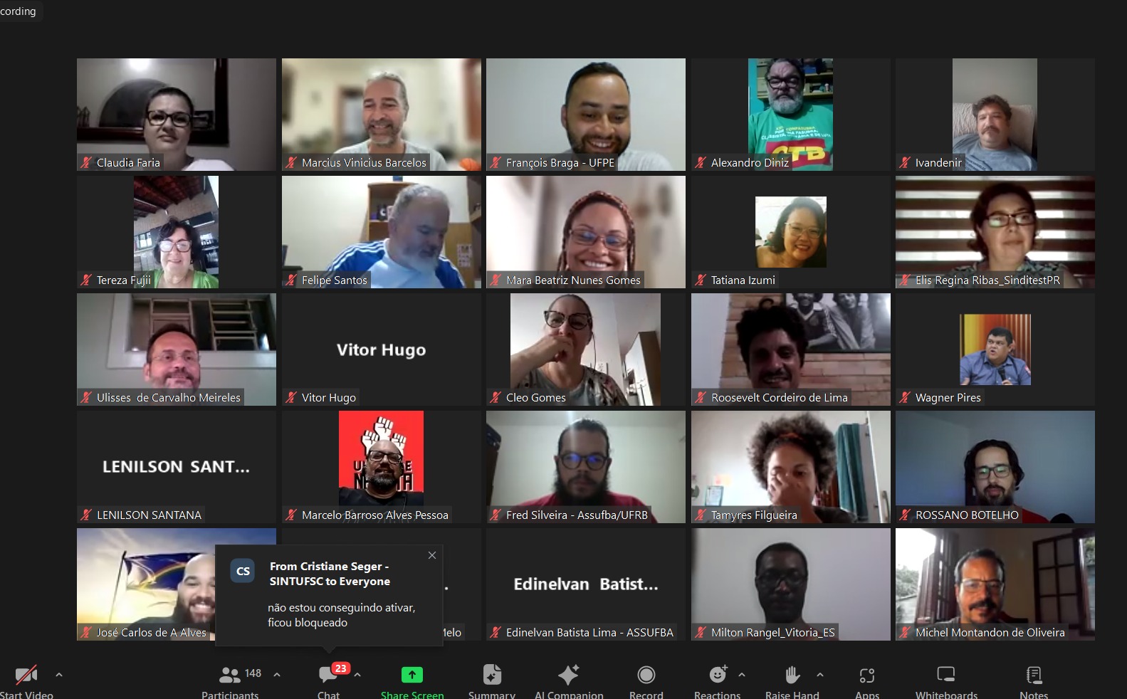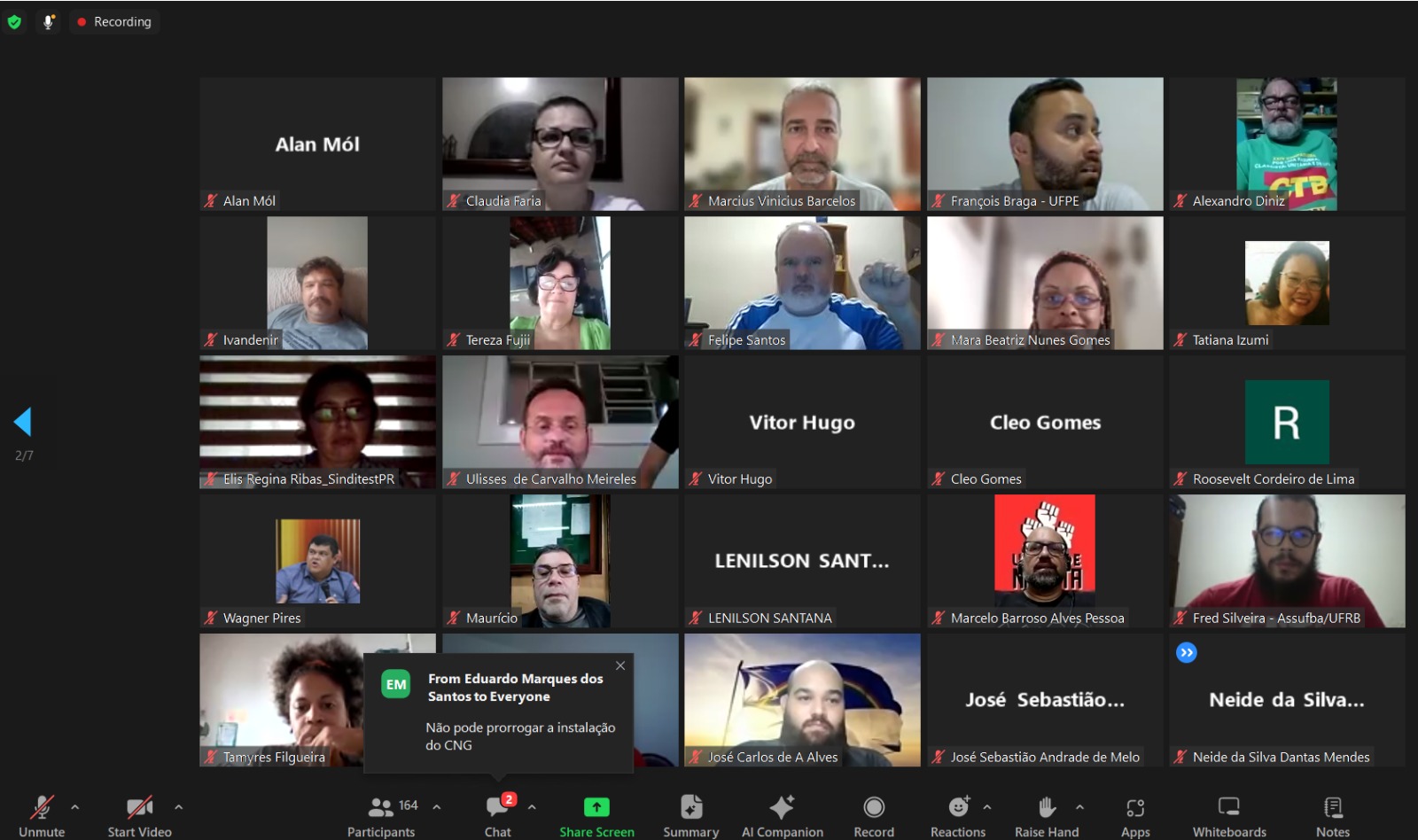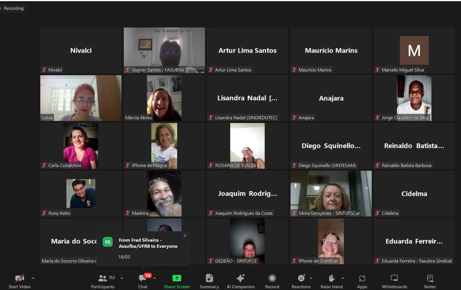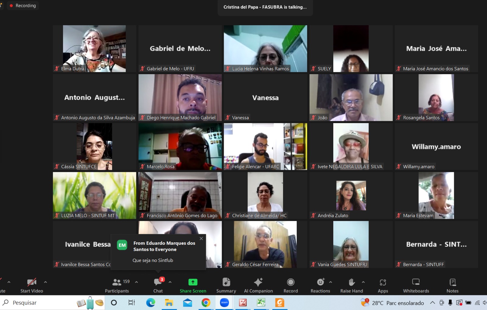 Plenária Nacional Virtual da Fasubra ratifica deflagração da greve no dia 11 de março e encaminha propostas de calendário ao Comando Nacional de Greve