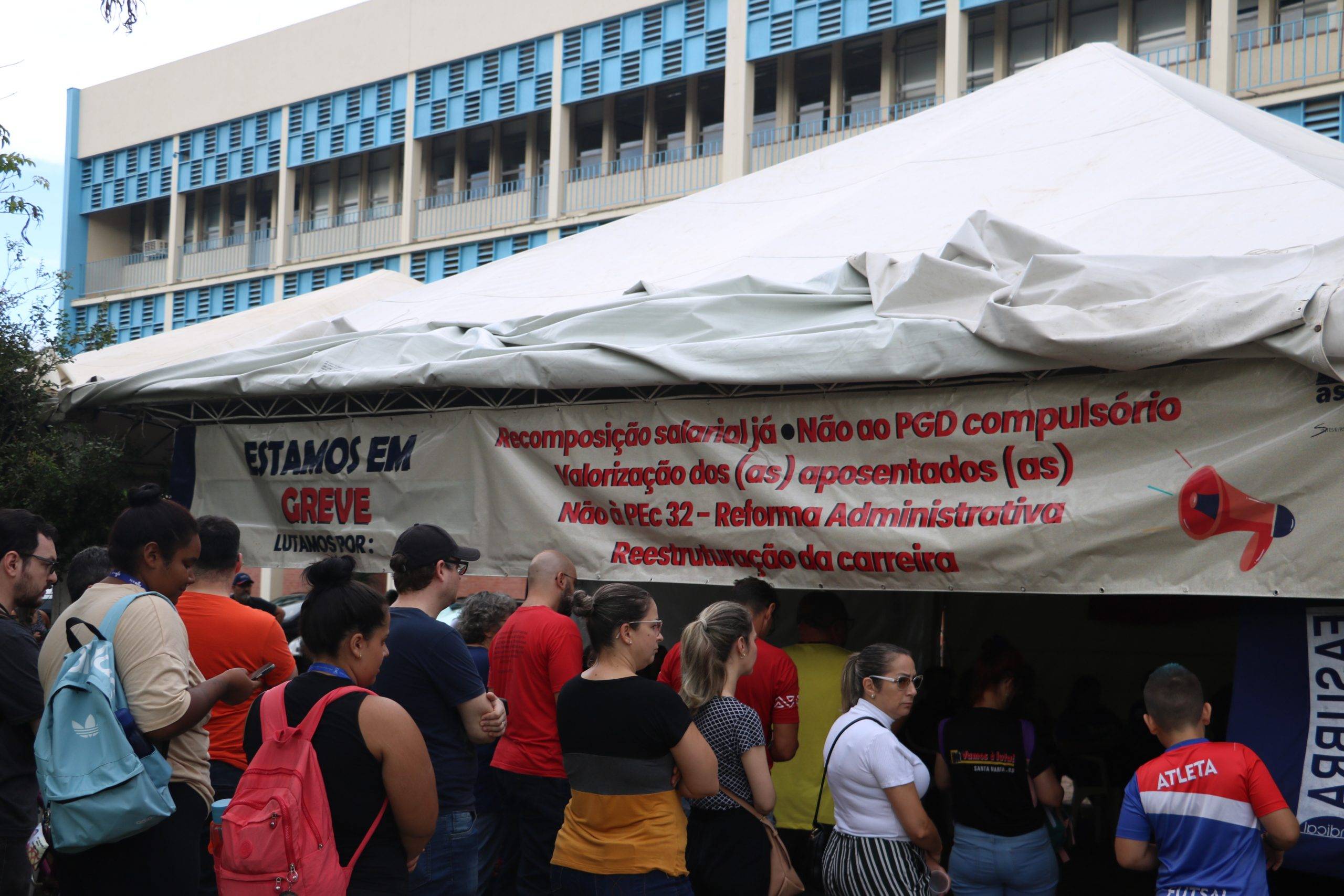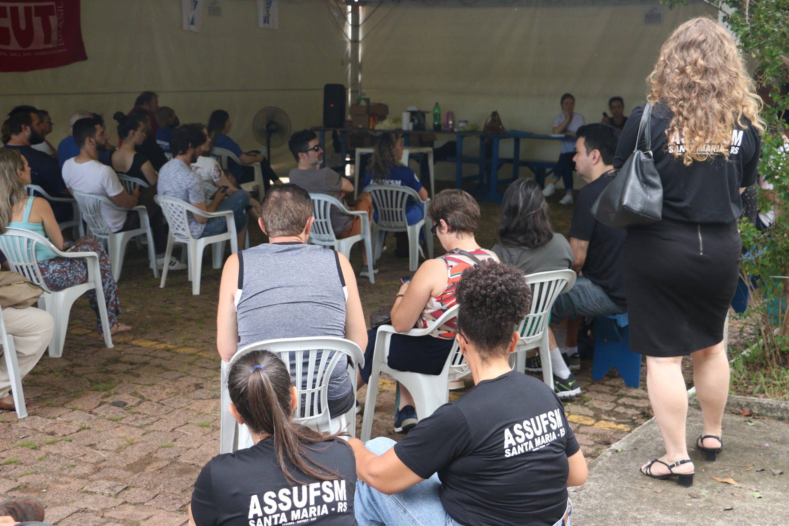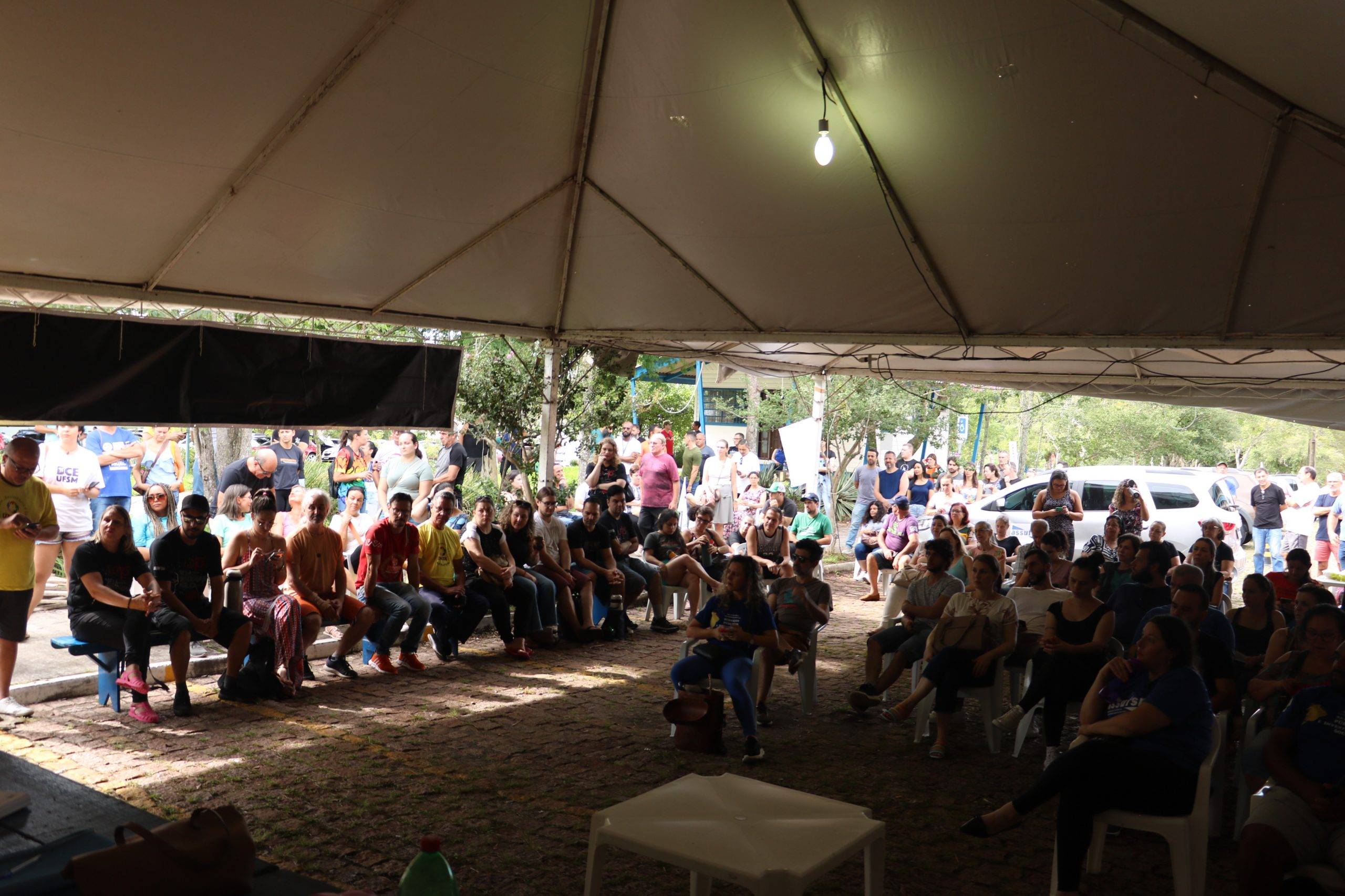 Na manhã desta terça-feira (19), a categoria realizou a segunda Assembleia de Greve, no lonão instalado em frente ao Centro de Ciências Naturais e Exatas. A Assembleia trouxe informes das atividades de mobilização e discutir pautas da greve.