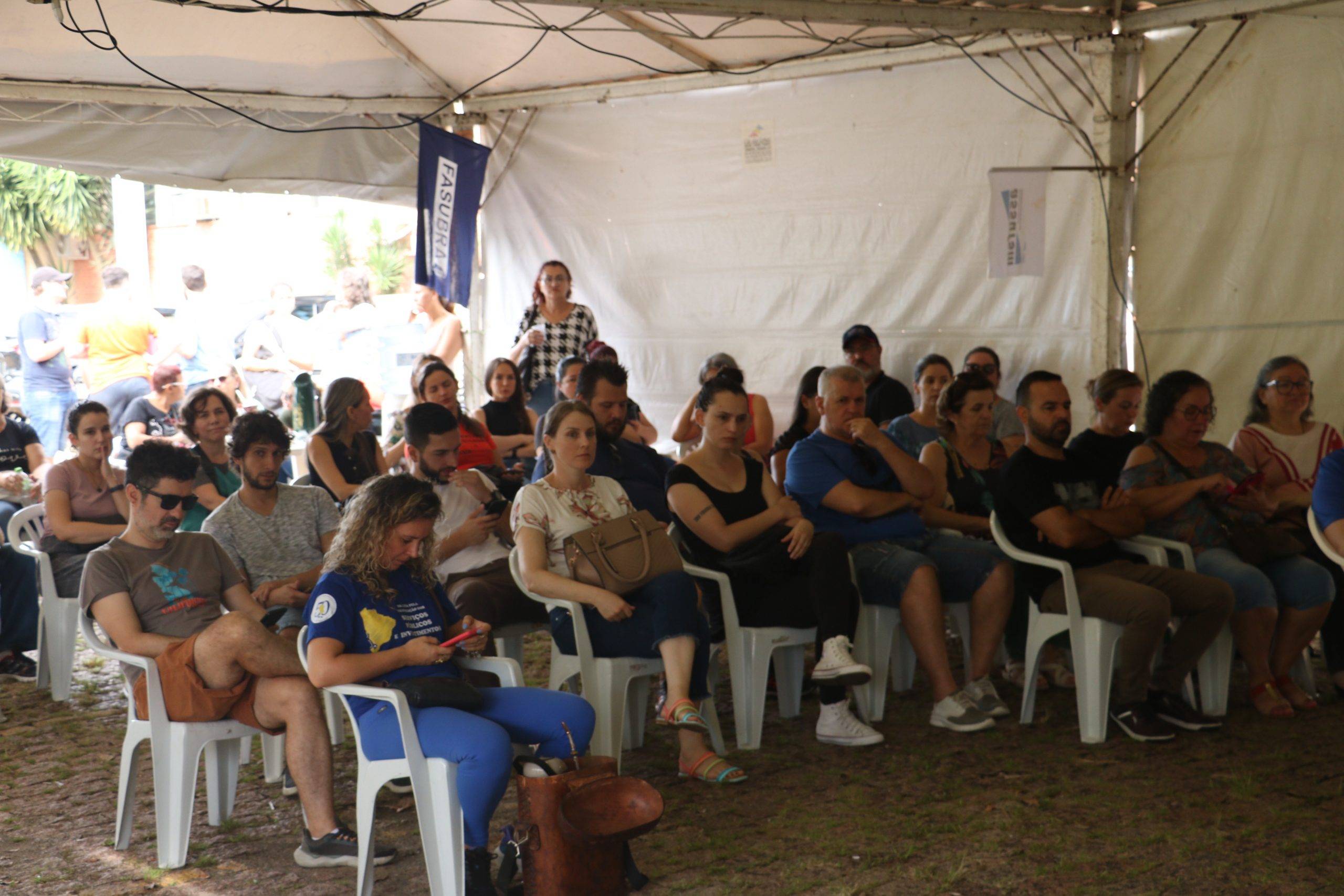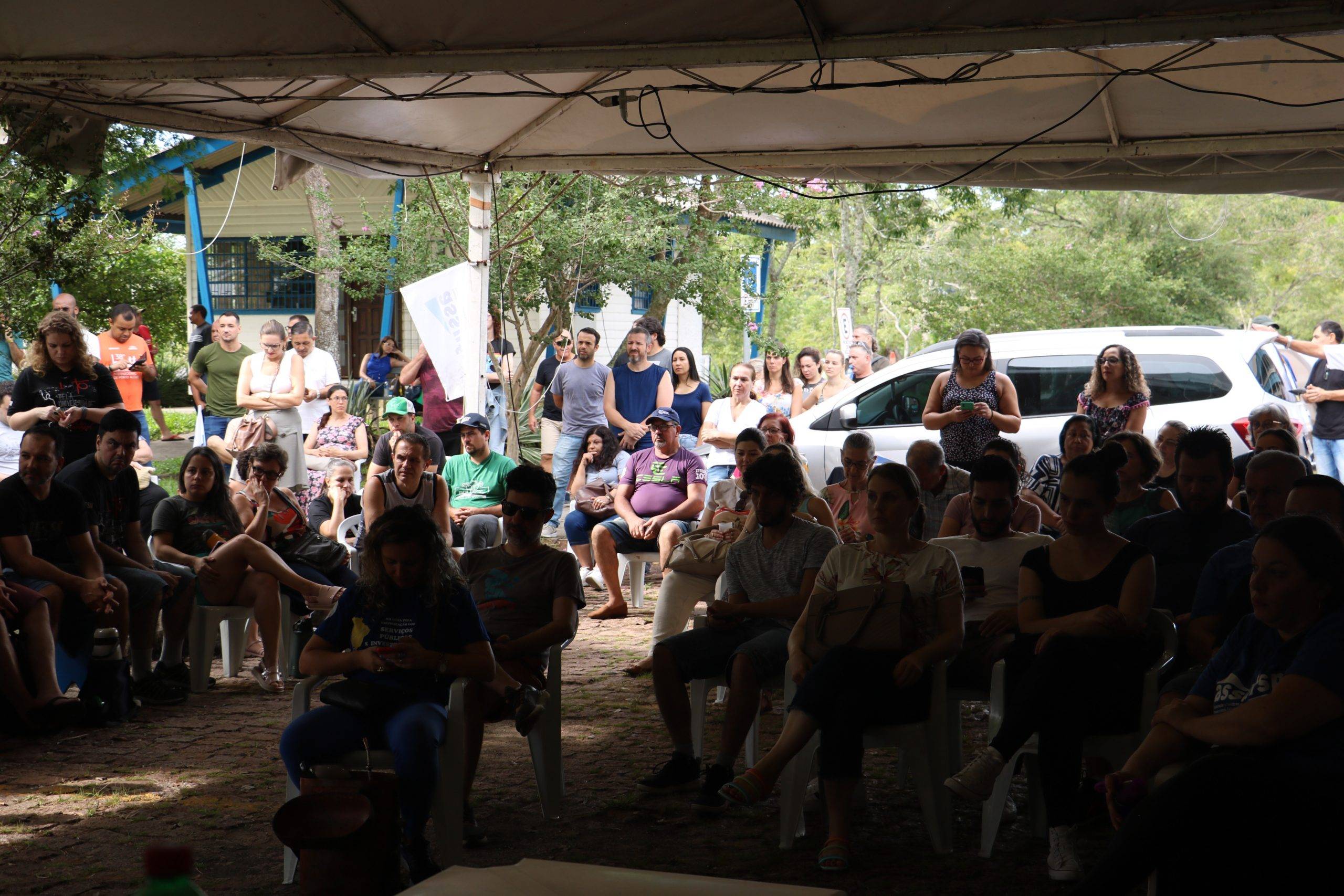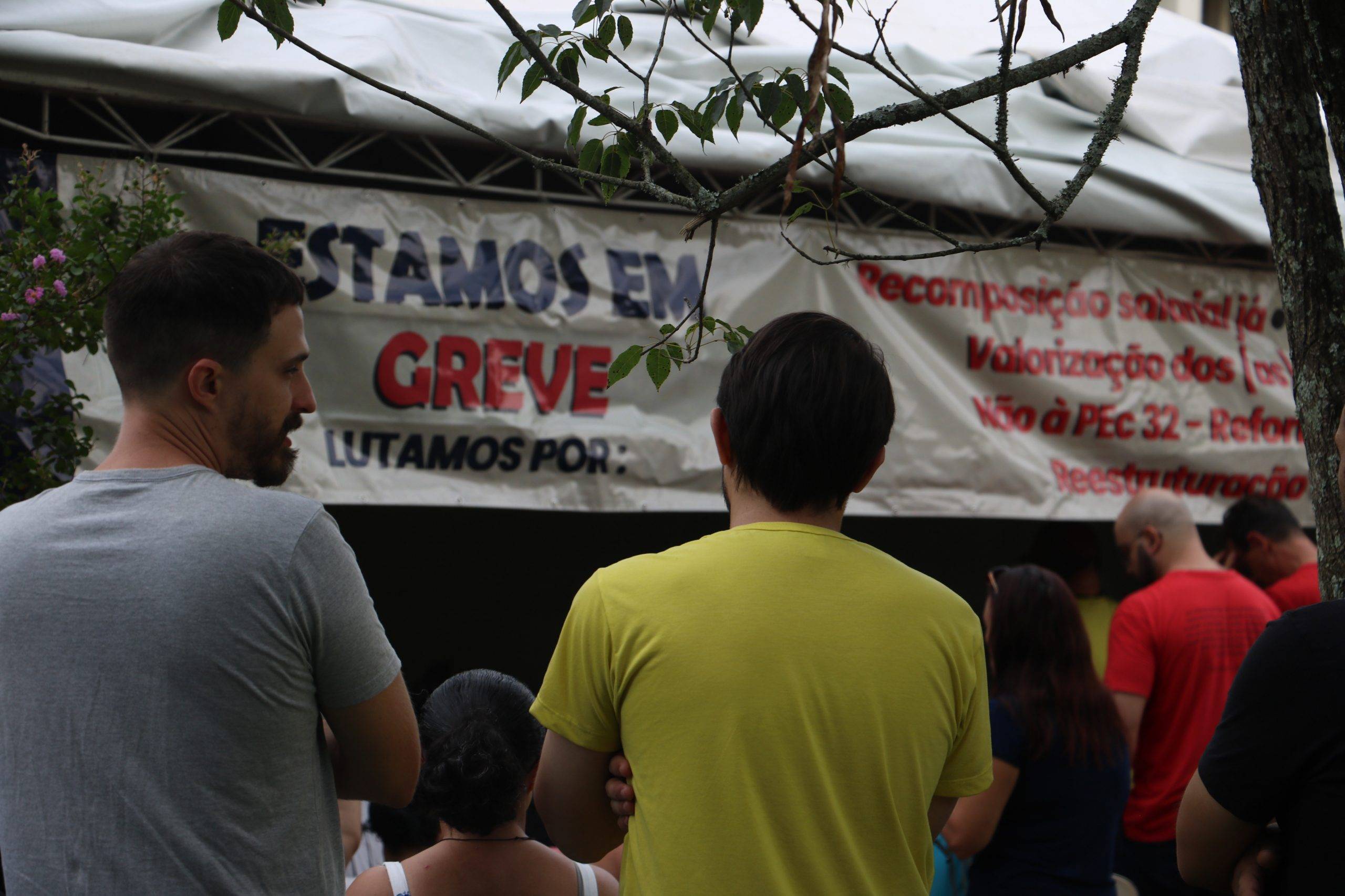 Na manhã desta terça-feira (19), a categoria realizou a segunda Assembleia de Greve, no lonão instalado em frente ao Centro de Ciências Naturais e Exatas. A Assembleia trouxe informes das atividades de mobilização e discutir pautas da greve.