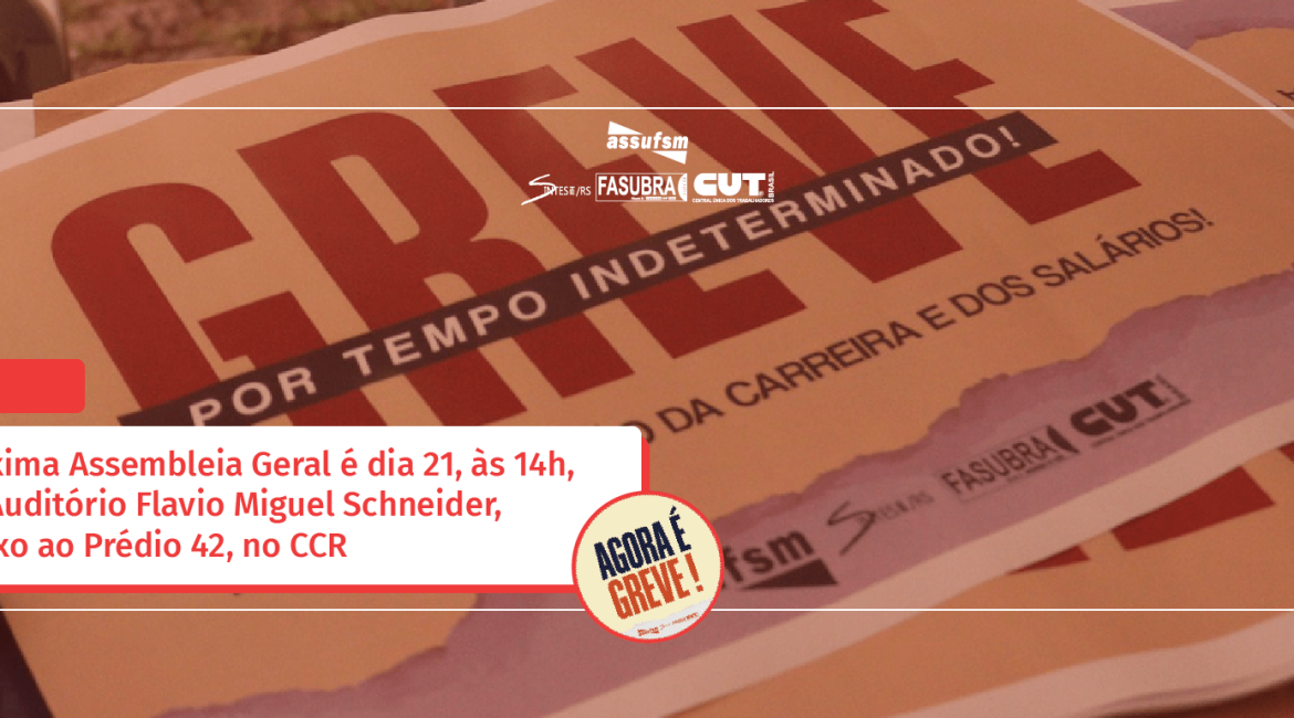 A Assembleia será às 14h, no Auditório Flavio Miguel Schneider, no Centro de Ciências Rurais (CCR), anexo ao prédio 42.