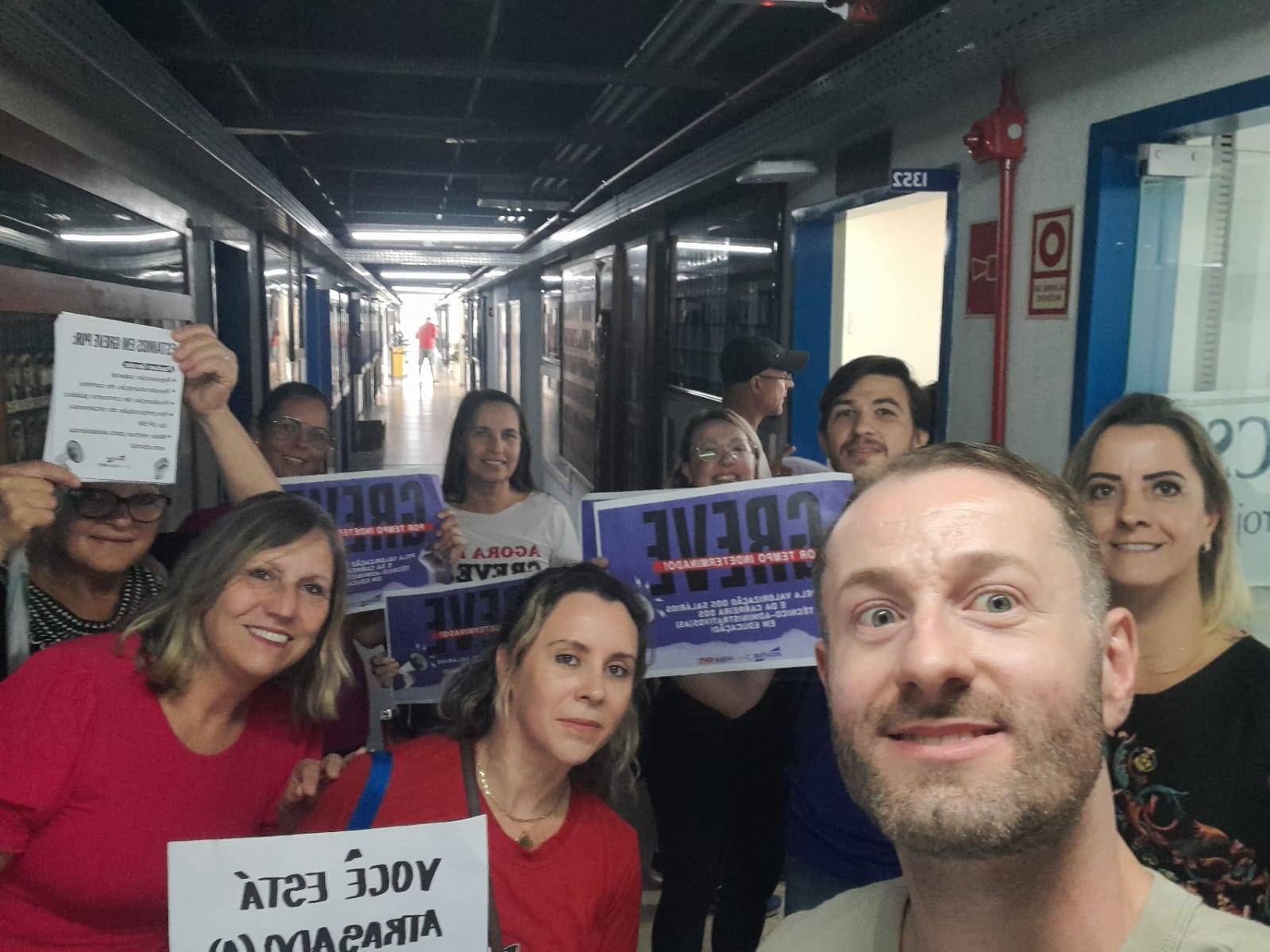Parte do Comando Local de Greve também esteve mobilizado fazendo uma visita aos campi de Palmeira das Missões e Frederico Westphalen, para esclarecer dúvidas e fortalecer o movimento grevista.