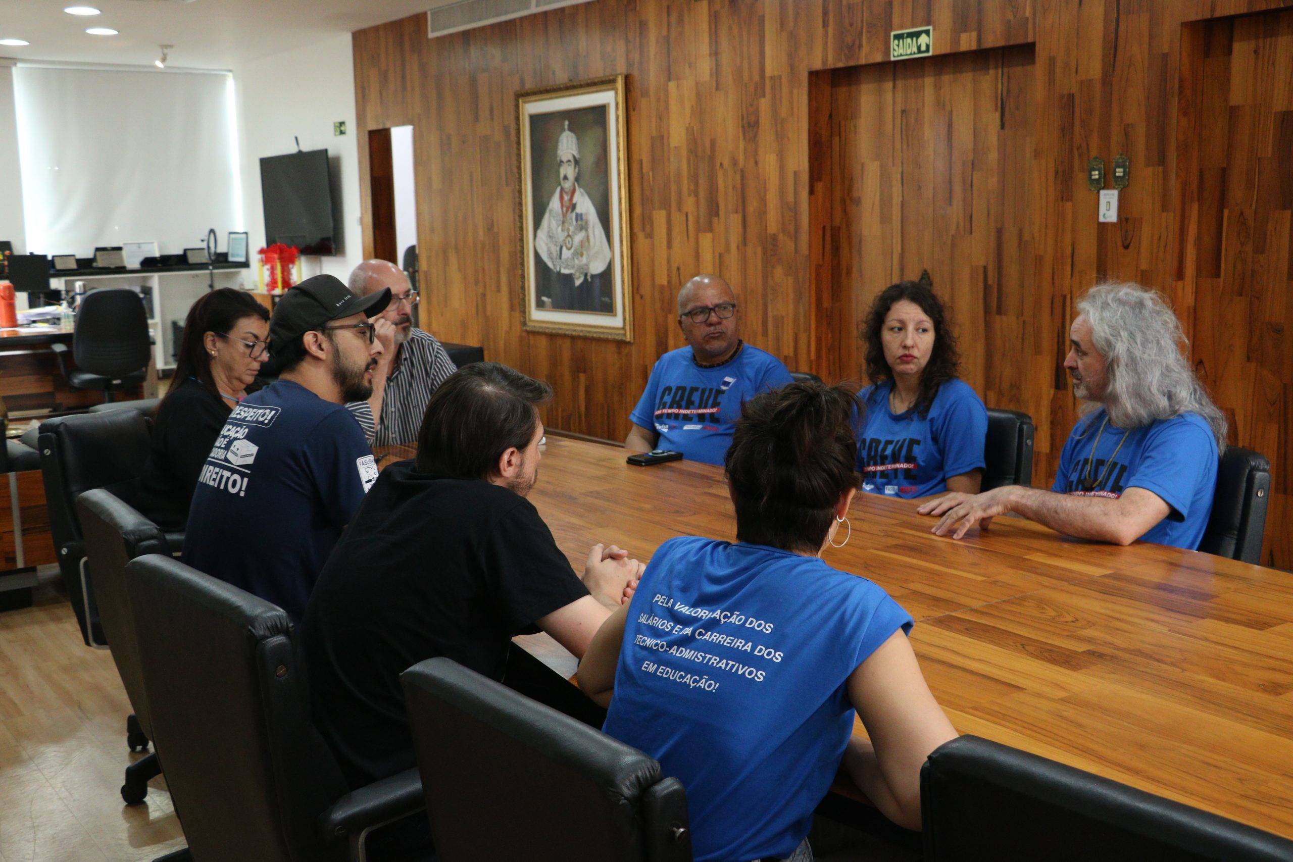 Às 11h da manhã, representantes do Comando Local se reuniram com o reitor Luciano Schuch e a vice-reitora Martha Adaime para tratar sobre os seguintes pontos: garantia de que os pontos de grevistas e não-grevistas só serão fechados após o término da greve; extensão do prazo para compensação de horas devidas em função do recesso de final de ano.