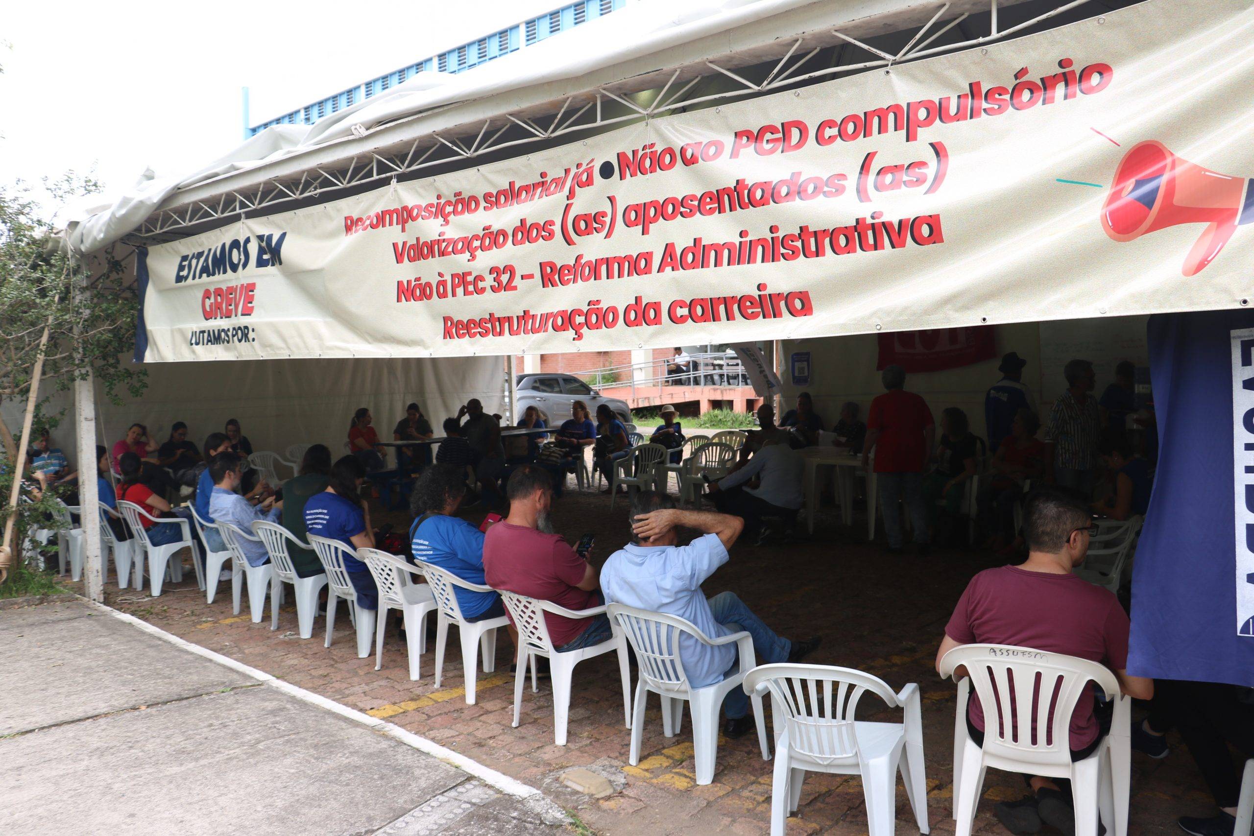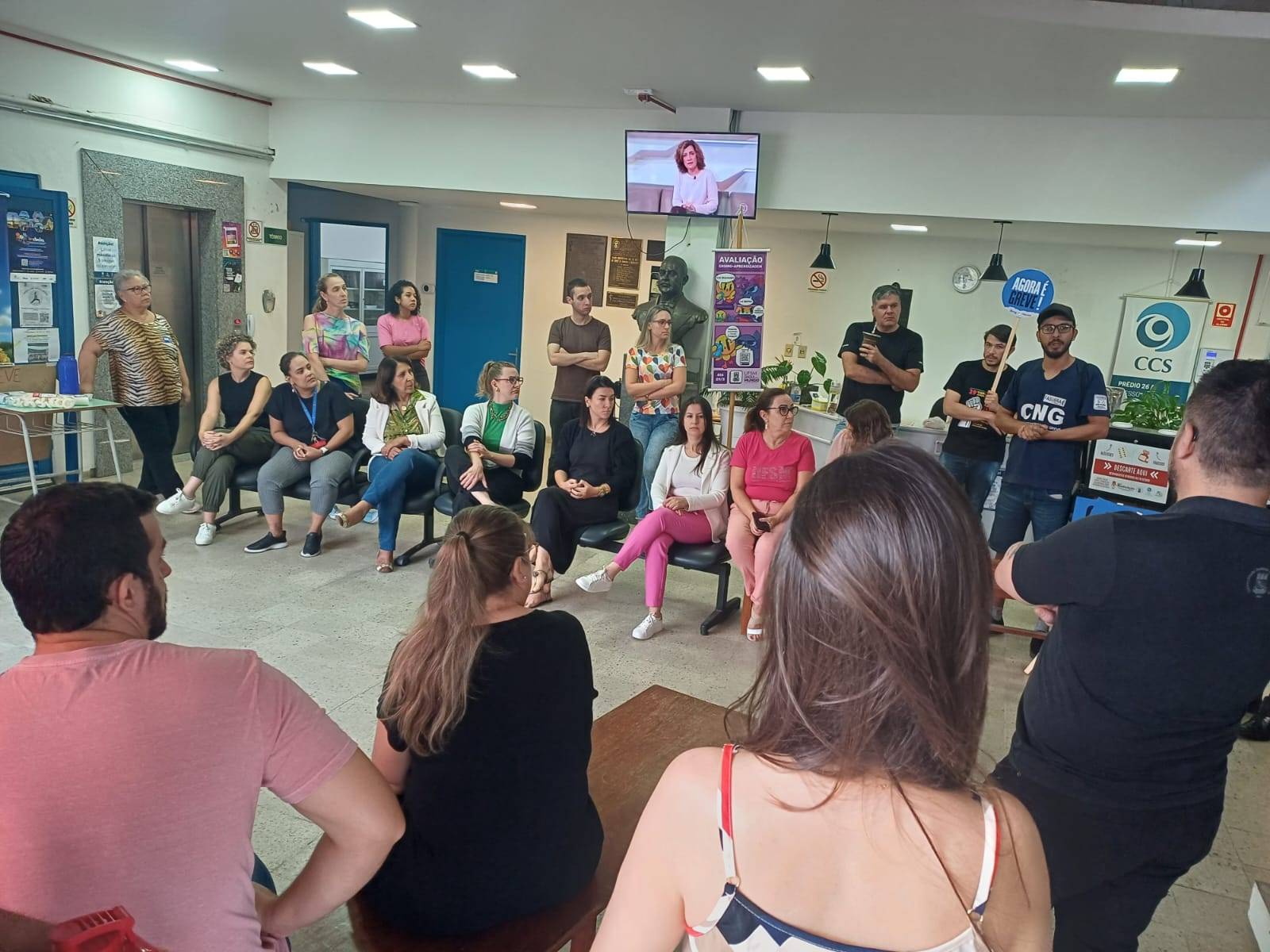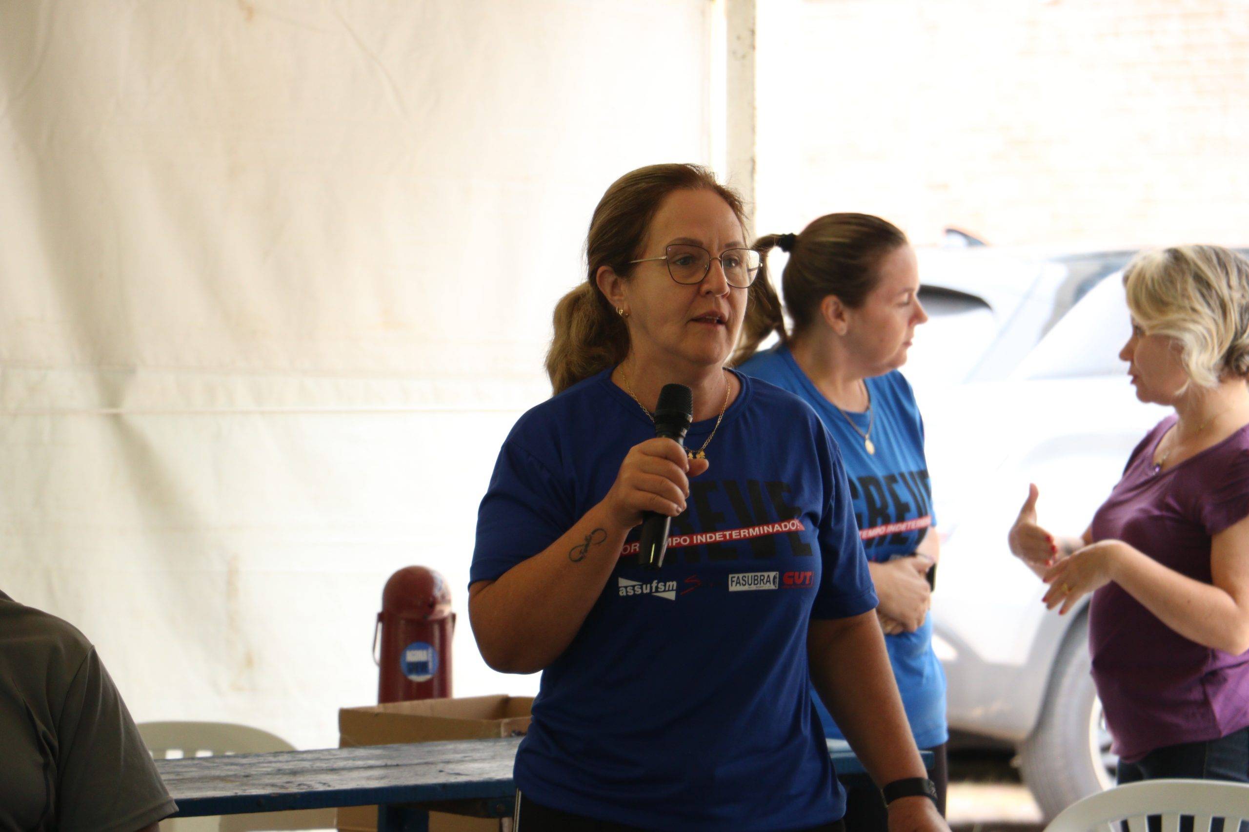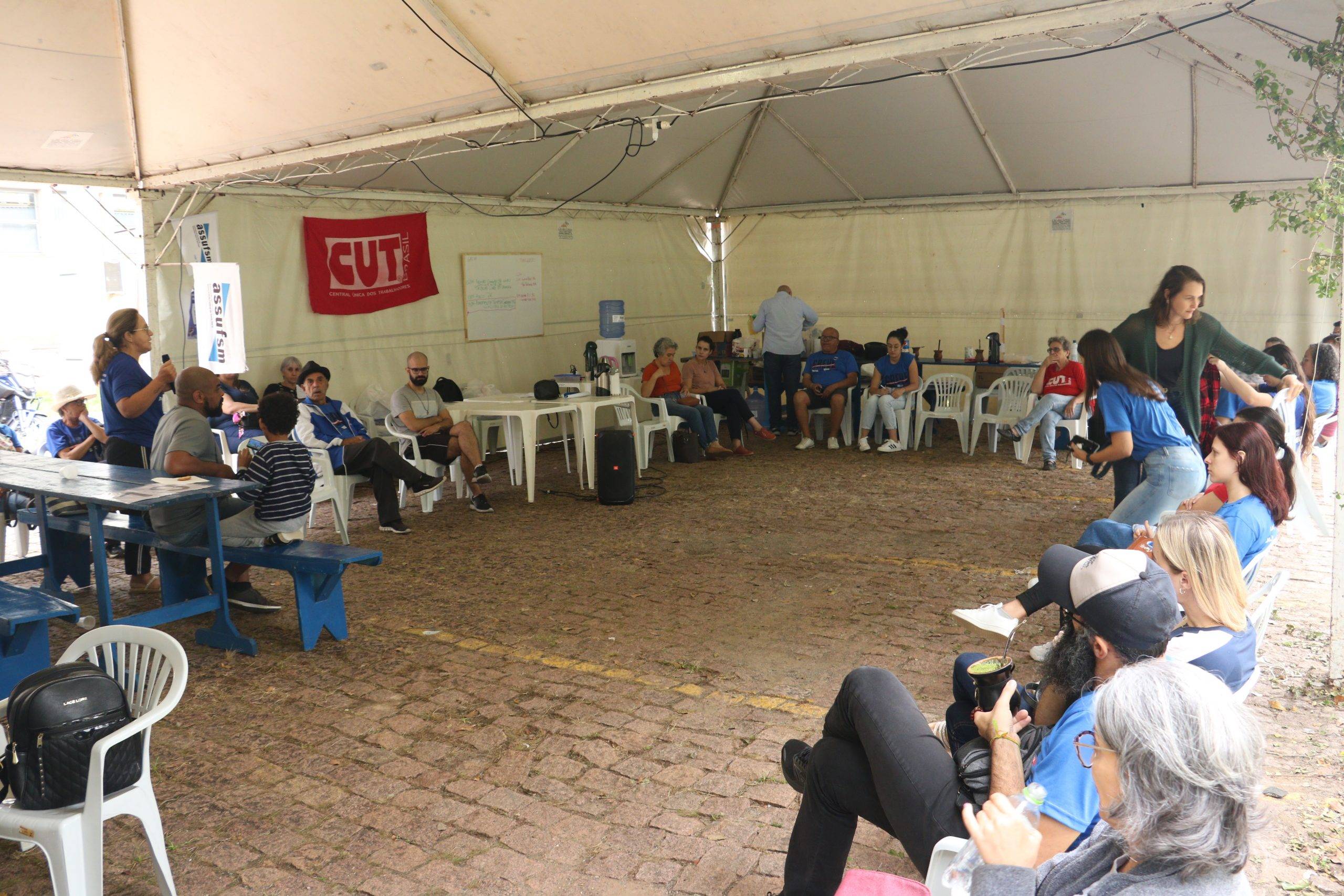 Nesta manhã, o Comando Local de greve discutiu e planejou ações para a Mobilização em frente ao Arco de entrada do campus sede, a ser realizada a partir das 7h de quarta-feira (03). Além disso, informes locais foram trazidos pelos(as) TAEs que também fizeram o debate de conjuntura e pautas da greve. O representante estadual da Central Única dos Trabalhadores (CUT-RS) Marcelo Carlini esteve, nesta manhã, em visita ao Comando Local e também contribuiu para o debate, com uma avaliação do movimento grevista no RS e país.