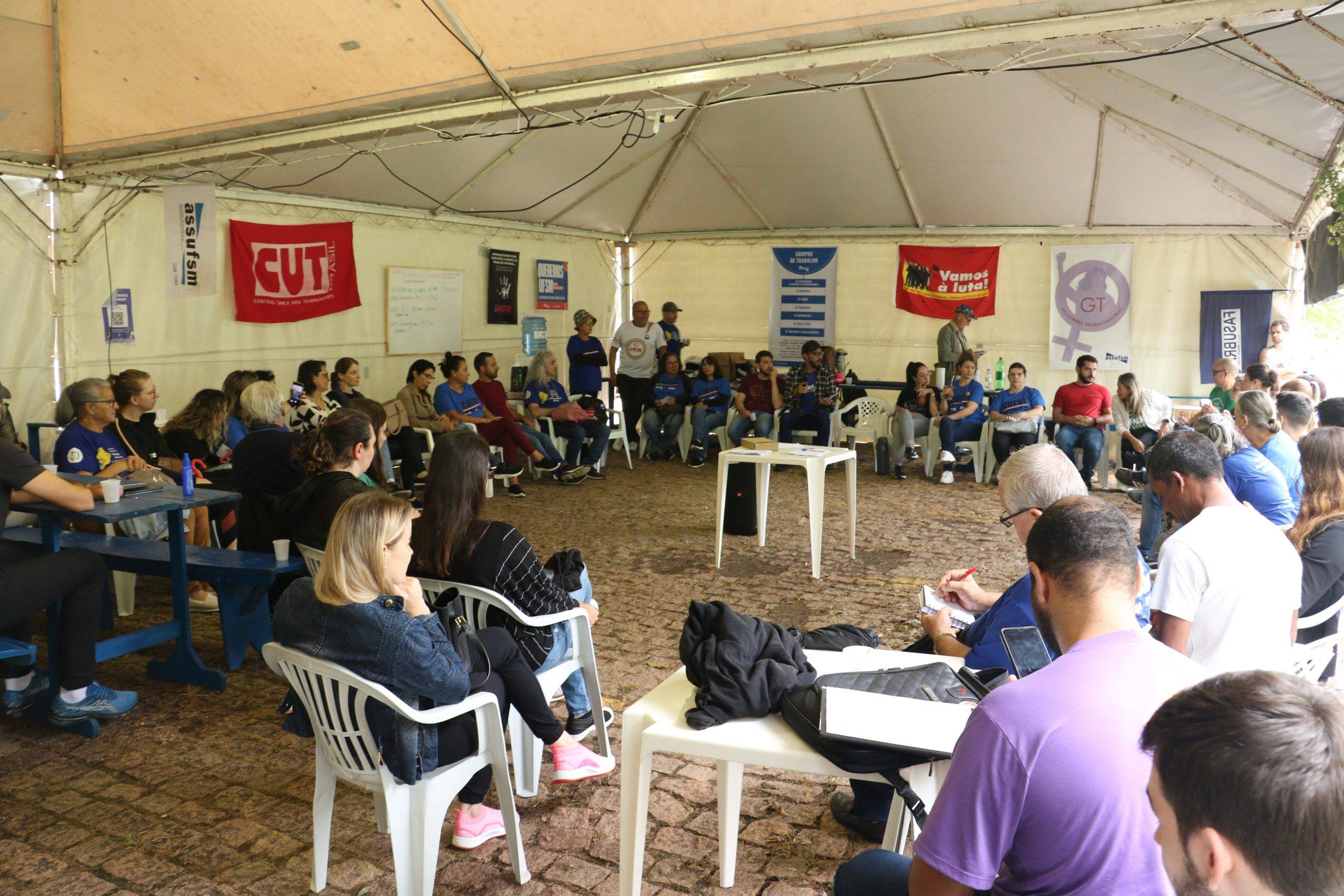 As reuniões do Comando Local acontecem diariamente no lonão, às 9h – com exceção dos dias em que há atividades e assembleias externas, divulgadas na agenda da greve.