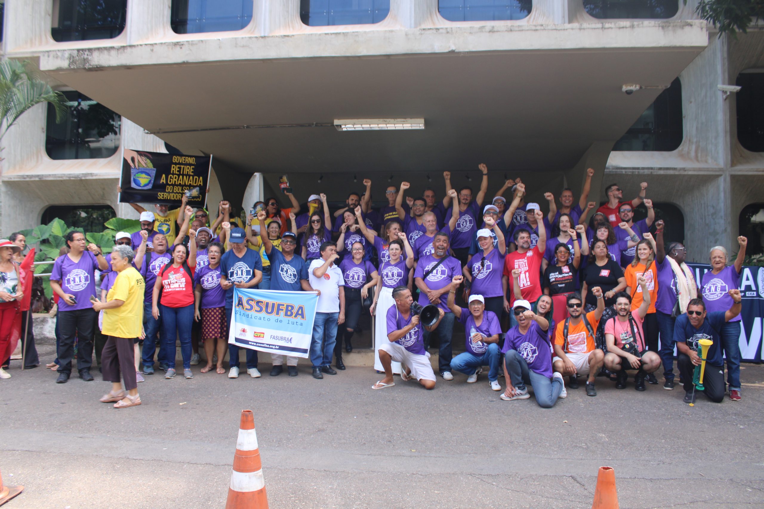 O Comando Nacional de greve da FASUBRA se organizou para marcar presença no ato, que reuniu também diversas entidades do funcionalismo público federal.