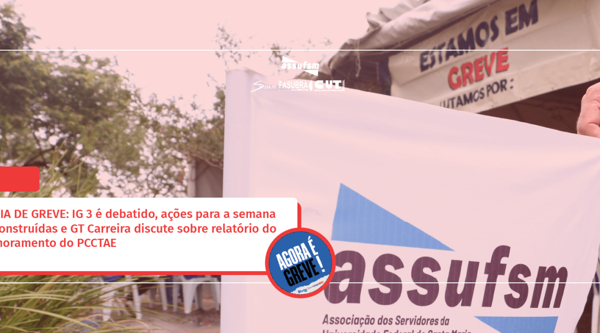 ➡ Quarta-feira (17) – Reunião do CLG no lonão de greve, às 9h | GT Carreira, às 10h, no lonão para debater o relatório da CNSC.
