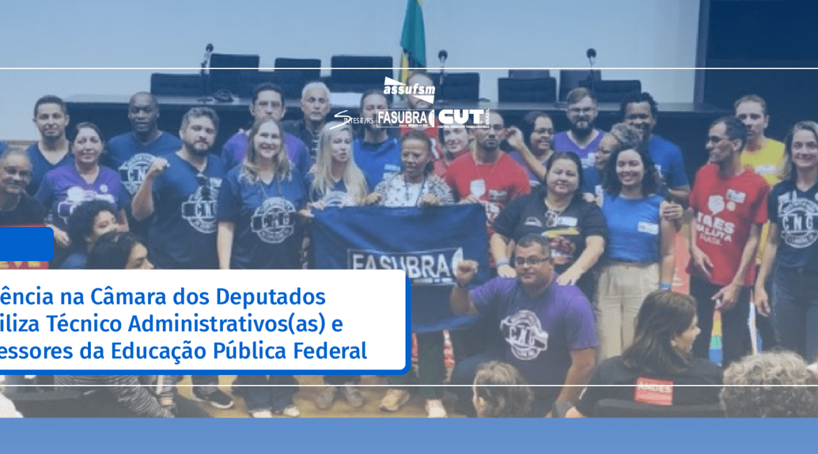 O evento aconteceu depois das 16 horas no auditório Nereu Ramos da Câmara dos Deputados. A audiência pública teve como tema “Greve da educação pública federal”. O requerimento foi da Deputada Sâmia Bonfim (PSOL- SP) e contou com a participação de vários parlamentares que defendem a educação pública de qualidade com valorização de servidoras e servidores, técnico-administrativos e professores.