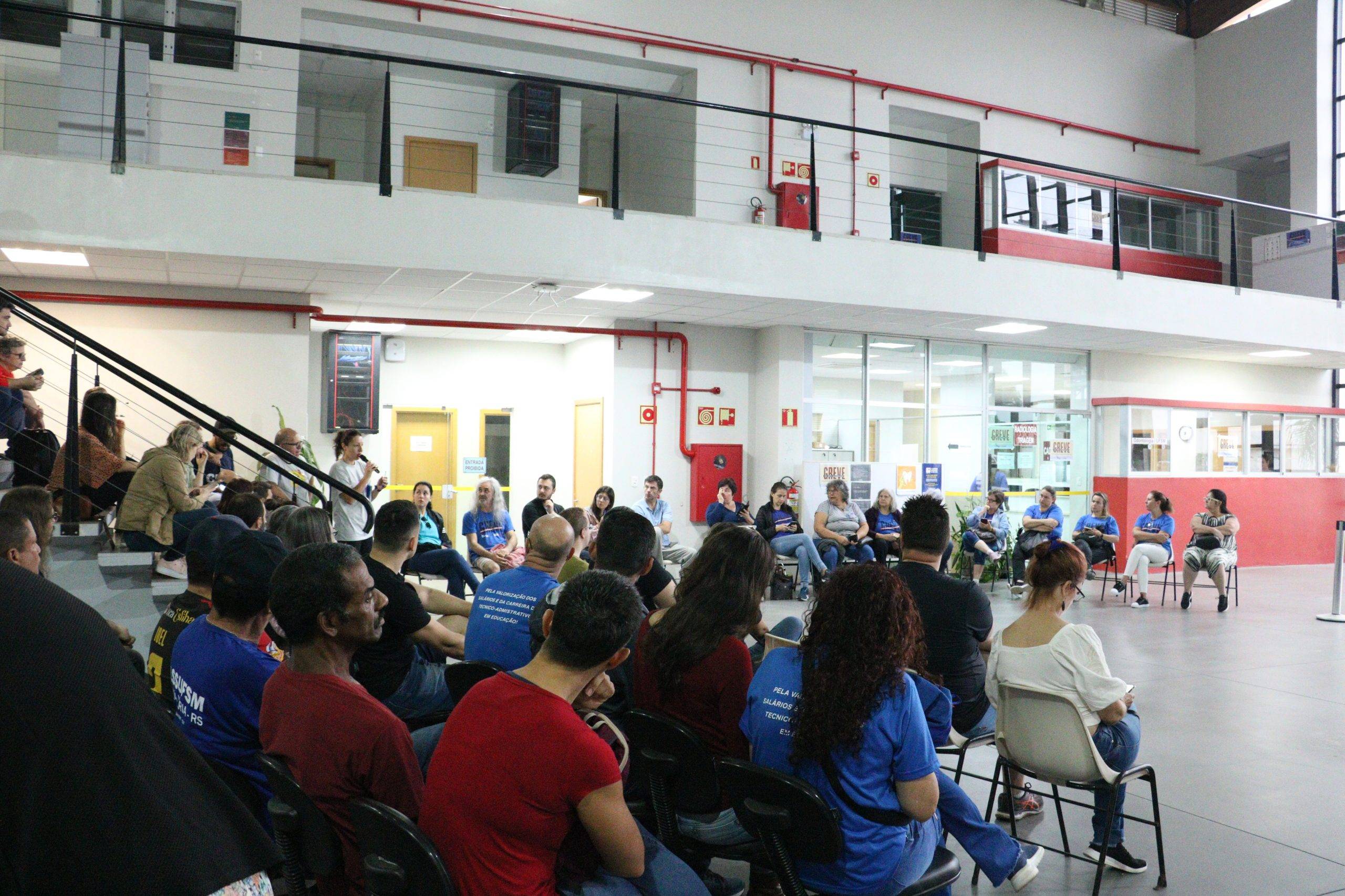 Nesta manhã de segunda-feira (22), quadragésimo dia do movimento paredista,  o Comando Local realizou reunião no hall do prédio 26F do curso de Odontologia. Quase a totalidade do quadro de TAEs que integra o curso está em greve e vêm sofrendo sucessivas formas de assédio. Além das pautas gerais da greve, a categoria luta por pautas específicas, como a flexibilização da jornada de trabalho e o adicional de insalubridade. Após, a coordenadora geral da Assufsm Natália San Martin fez a leitura da Carta redigida pelos(as) servidores(as) da Odontologia, em resposta à publicação de uma turma que questiona a legitimidade do movimento, sob o argumento de que as aulas práticas dos(as) alunos(as) estariam sendo afetadas. Na carta, as(as) servidoras(as) manifestam as demandas da categoria em greve e descrevem que “não se pode misturar interesses individuais com essencialidade”. Veja o texto da Carta na íntegra: