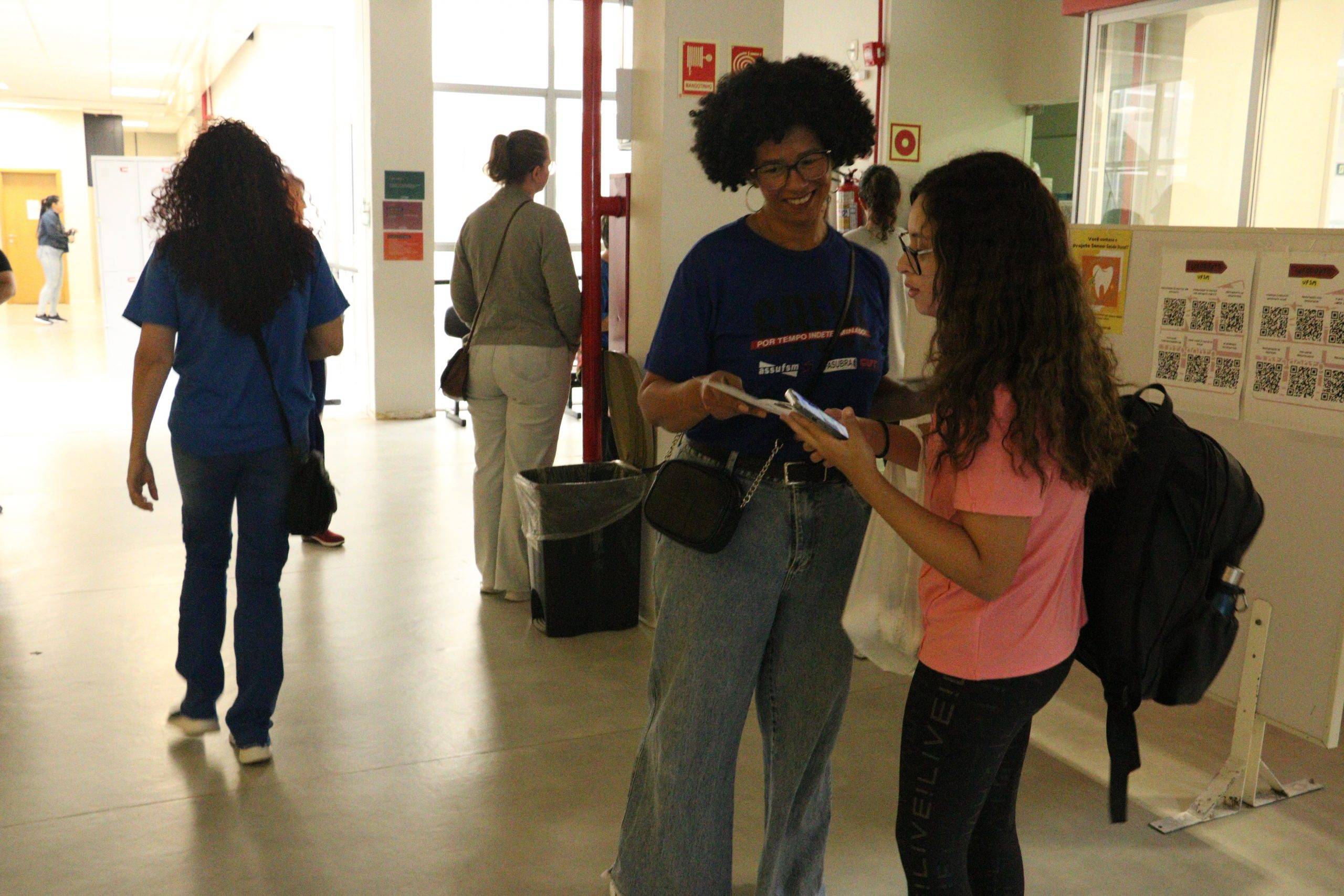 O Comando Local deve cobrar novamente respostas da Reitoria sobre a avaliação da insalubridade e de carga horária reduzida para os(as) TAEs da Odontologia, uma vez que essas questões impactam diretamente na qualidade de vida dos(as) servidores(as). Além disso, a reunião desta manhã trouxe informes nacionais com o coordenador geral da Assufsm Ciro Oliveira e a coordenadora geral da Fasubra Loiva Chansis, sobre a Marcha em Brasília e a 4ª Reunião da Mesa Específica e Temporária que aconteceu na sexta-feira (19), com o Ministério da Gestão e Inovação em Serviços Públicos. Por fim, também foi deliberada a participação dos(as) conselheiros(as) na reunião do Conselho Universitário, que será realizada na próxima sexta-feira (26). Ao término da reunião, foi realizada uma panfletagem no prédio da Odontologia, para informar e conscientizar estudantes e professores sobre os motivos da greve dos(as) TAES. Amanhã (23), às 9h da manhã, a Assembleia acontece no auditório do CTISM. TAE, ompareça e construa uma greve forte conosco!