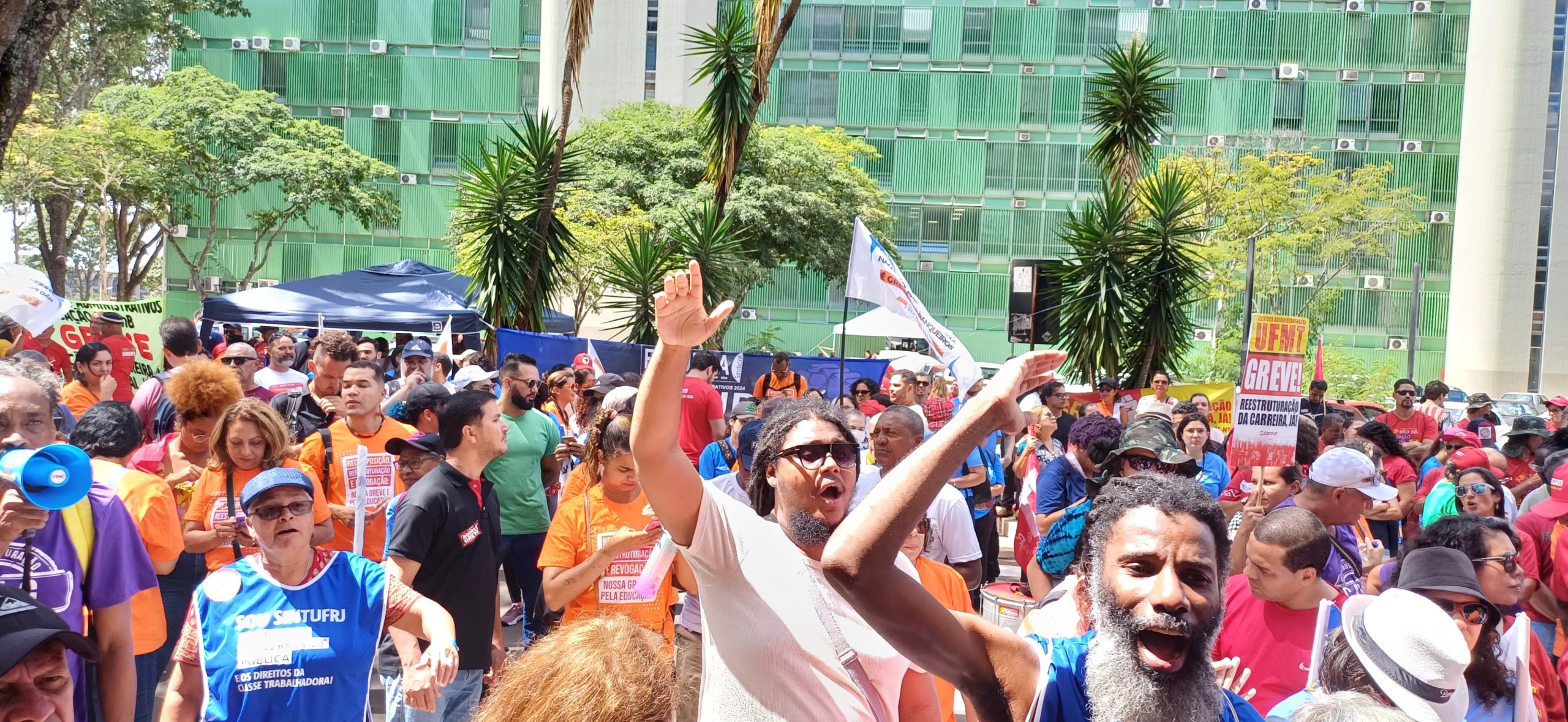 Nesta sexta-feira, 19 de abril, dia em que a FASUBRA completa 40 dias de greve, aconteceu o ato unificado em frente ao Bloco C, na Esplanada dos Ministérios.